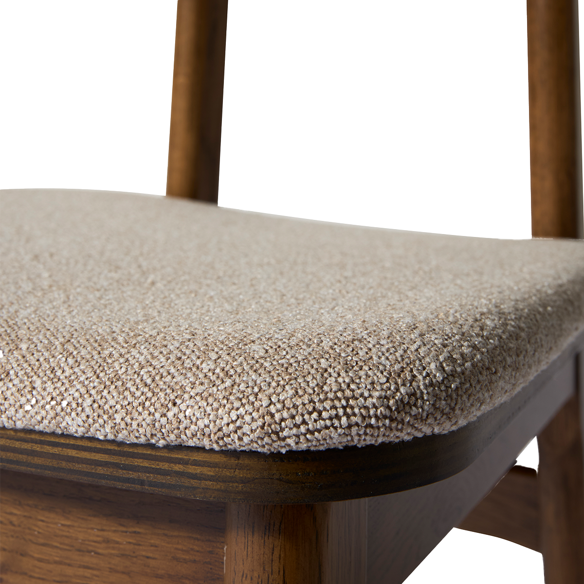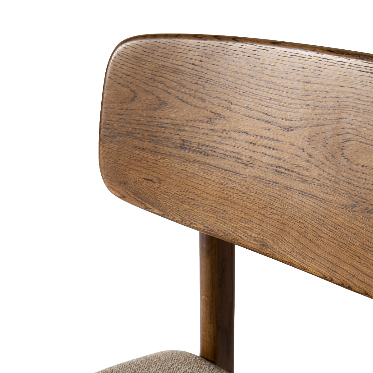 Het gerookt eikenhouten frame geeft de stoel een warme, chique uitstraling, terwijl de lichtbruine zitkussen zorgt voor extra comfort. Of je nu uitgebreid tafelt of even snel aanschuift, de Nowi stoel zit altijd goed. Dankzij het tijdloze design past deze stoel moeiteloos in verschillende interieurstijlen. Van modern tot klassiek en alles daartussenin – de Nowi voegt net dat beetje extra sfeer toe aan je eethoek.