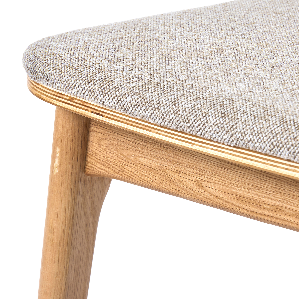Het naturel eikenhouten frame geeft ‘m een frisse, lichte uitstraling, en het lichtgrijze zitkussen maakt ‘m net wat comfortabeler. Perfect voor lange diners, snelle ontbijtjes of gewoon een gezellig koffiemoment. Dankzij het tijdloze design kun je deze stoel makkelijk combineren met verschillende tafels en stijlen, van Scandinavisch tot modern of zelfs een beetje boho. Een eetkamerstoel die er goed uitziet én lekker zit, is altijd een goede keuze.