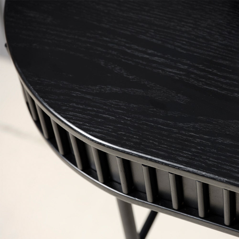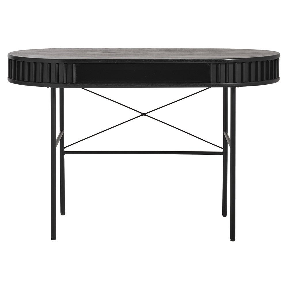 Het Redmer bureau van Olivine is een trendy houten bureau met ovale vorm.