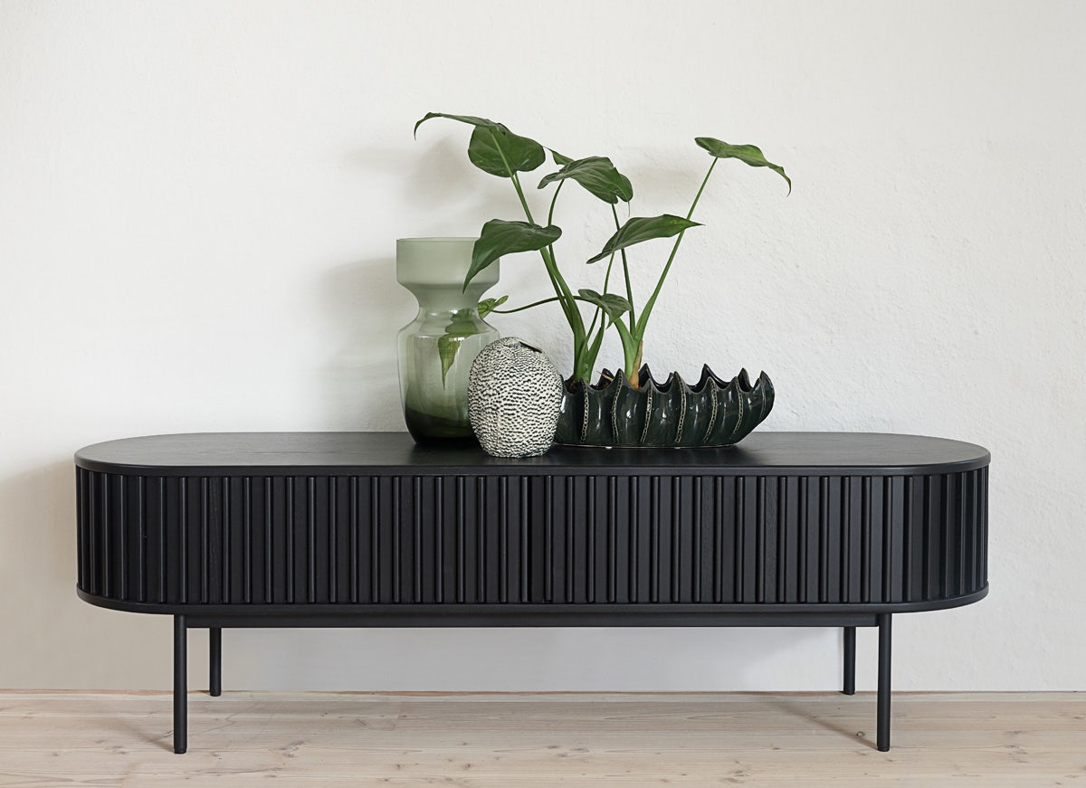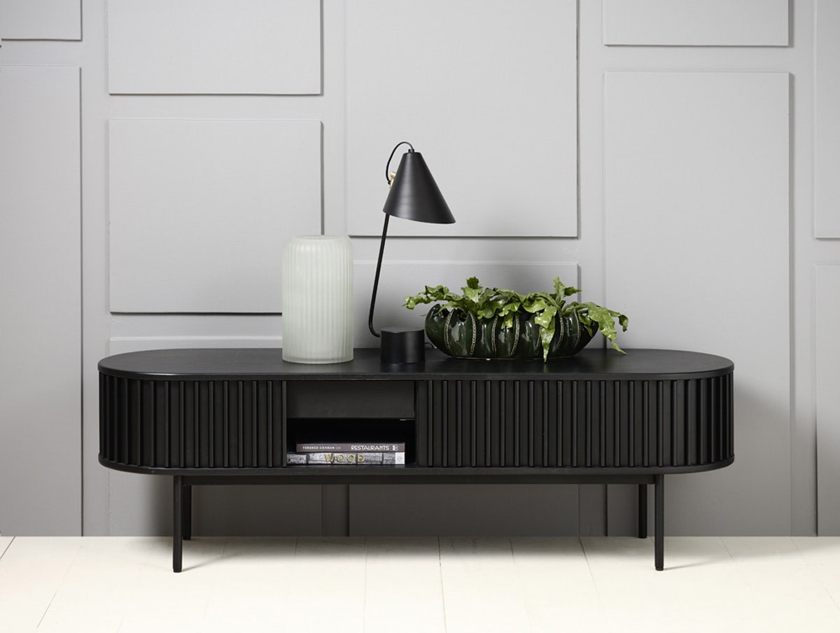 Olivine Redmer Houten TV meubel met Schuifdeuren - B 160 cm - Zwart