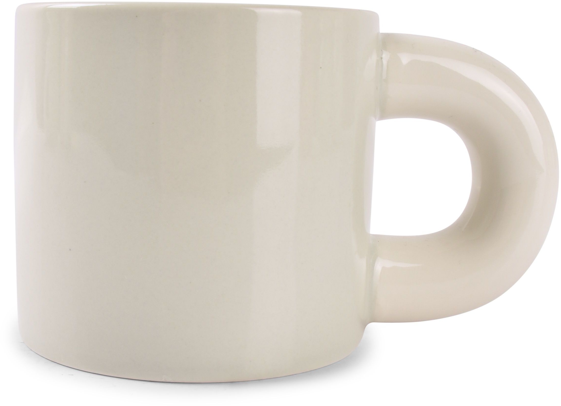 - De bekers hebben opvallend grote, dikke handvatten die een uniek accent toevoegen.