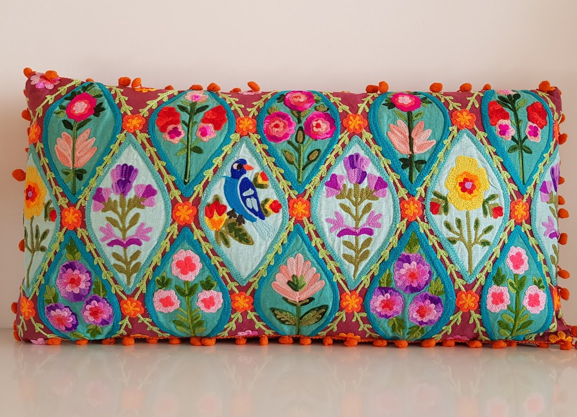 Dit kussen is van het merk Only Natural, zij laten deze kussens in India (fair trade) maken, zodat de oude ambachten niet verloren gaan, zij betalen de mensen een eerlijk loon en maken uiteraard geen gebruik van kinderarbeid. En... ook niet onbelangrijk: ze maken gewoon de allerleukste en meest kleurrijke kussens!