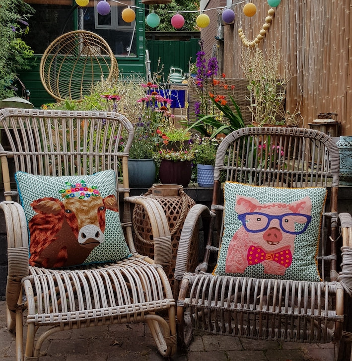 Dit kussen is van het merk Only Natural, zij laten deze kussens in India (fair trade) maken, zodat de oude ambachten niet verloren gaan, zij betalen de mensen een eerlijk loon en maken uiteraard geen gebruik van kinderarbeid. En... ook niet onbelangrijk: ze maken uiteraard de leukste en meest kleurrijke kussens!