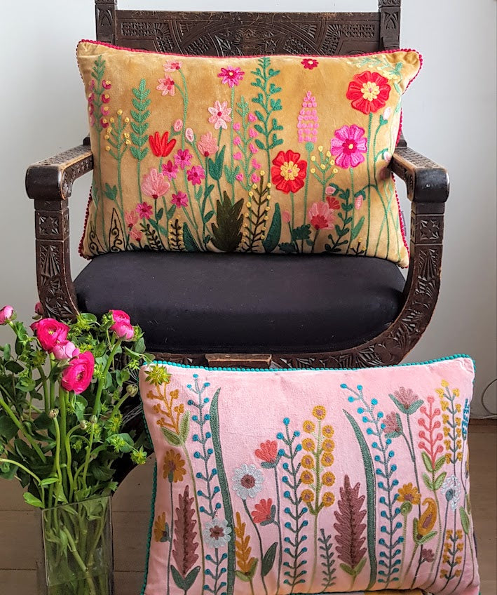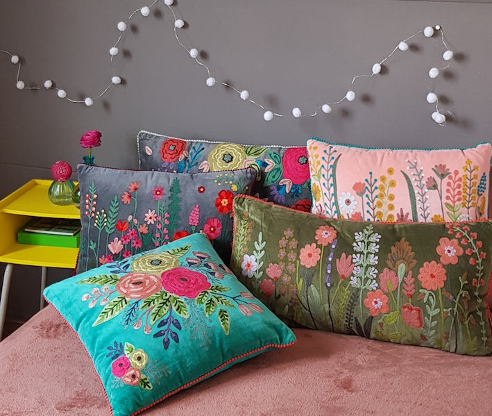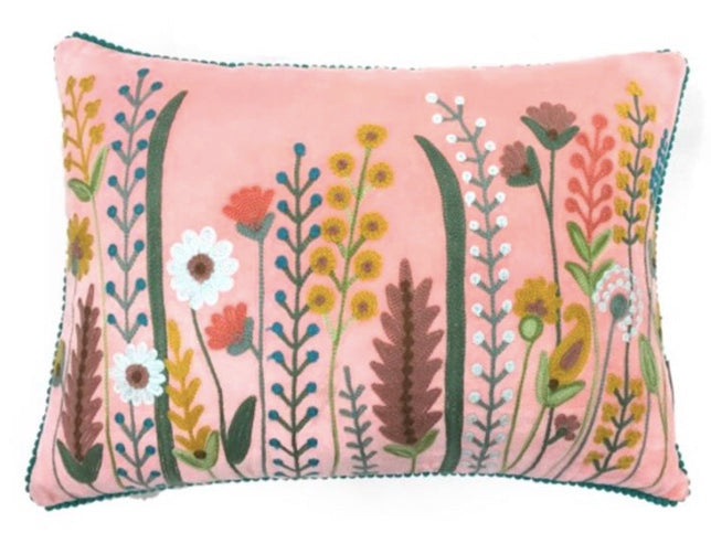 Only Natural Sierkussen bloementuin velvet - lichtroze 35x50
