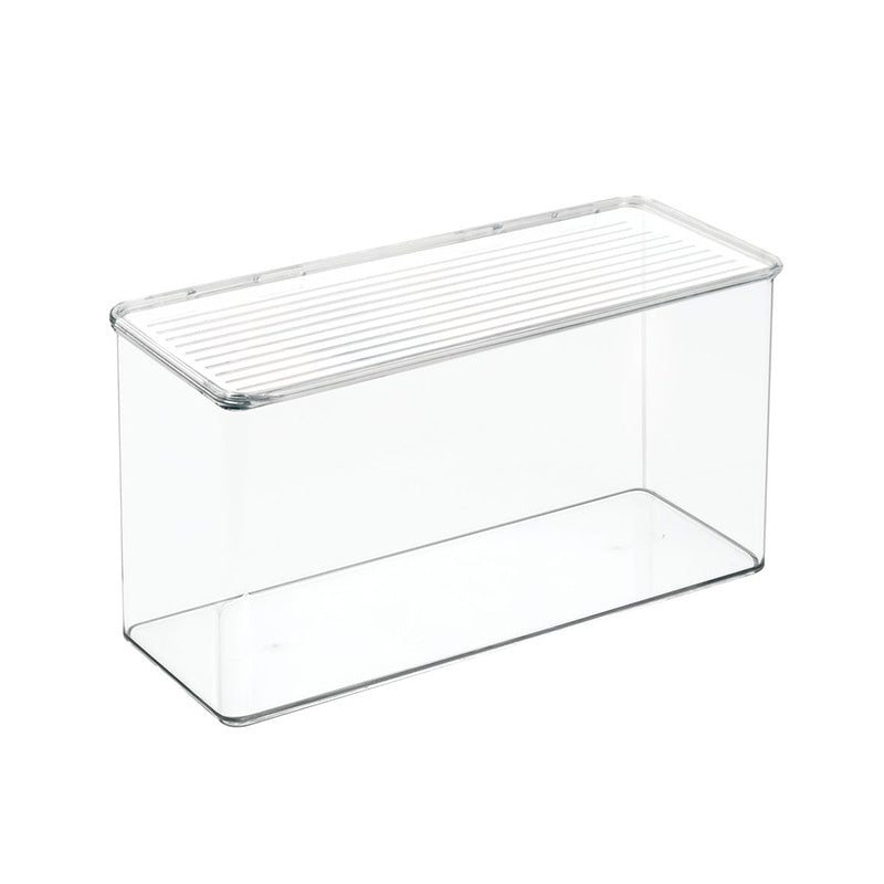 Opbergbox met Deksel, 34.3 x 14.6 x 17.8 cm, Stapelbaar, Kunststof, Transparant - iDesign | Kitchen Binz Met deze handige én multifunctionele opbergbox met deksel uit de Kitchen Binz serie van iDesign is het opruimen en organiseren van je keuken, kledingkast of andere ruimte nog nooit zo eenvoudig geweest. De opbergbox is gemaakt van kunststof en heeft een afmeting van 34.3 x 14.6 x 17.8 centimeter. De opbergbox kan eenvoudig afgesloten worden met de deksel, deze zorgt er ook nog eens voor dat de opbergbox stapelbaar is en je dus al je spulletjes eenvoudig op kunt bergen! Door het transparante materiaal van de opbergbox past deze in iedere gewenste ruimte. Combineer deze opbergbox met deksel met de andere handige opbergartikelen uit de Kitchen Binz serie van iDesign voor een altijd georganiseerde en opgeruimde setting in iedere gewenste ruimte! Pluspunten: