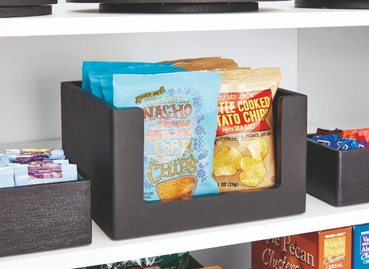 Met de The Home Edit open opbergbox van iDesign wordt het organiseren van de voorraadkast gecombineerd met de duurzaamheid van Paulownia hout. Dit hout wordt verkregen op een verantwoorde manier en staat bekend als het snelst groeiende hardhout ter wereld. Ondanks de duurzaamheid is het hout verrassend licht in gewicht. Hét perfecte materiaal voor deze opbergbox aangezien dit het verplaatsen extra makkelijk maakt. De open voorzijde geven je eenvoudig toegang tot de inhoud terwijl de rechte wanden ervoor zorgen dat de ruimte op de plank optimaal kan worden benut. Verder is de opbergbox bestand tegen kromtrekken en kan hij dan eenvoudig worden schoongemaakt met een vochtige doek. De opbergbox heeft een afmeting van 25.5 x 25.5 x 15 cm en is ook verkrijgbaar in het beige.