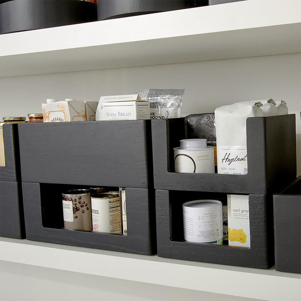 Opbergbox, Open, 25.5 x 38 x 15 cm, Paulownia Hout, Zwart – iDesign | The Home Edit
