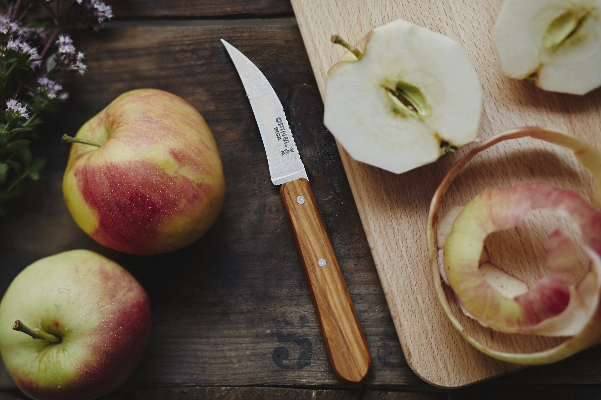 - De 4-delige Les Essentiels Olivier keukenset van Opinel is perfect voor alle dagelijkse snijklussen. Klassiek houten uiterlijk passend in elke keuken.