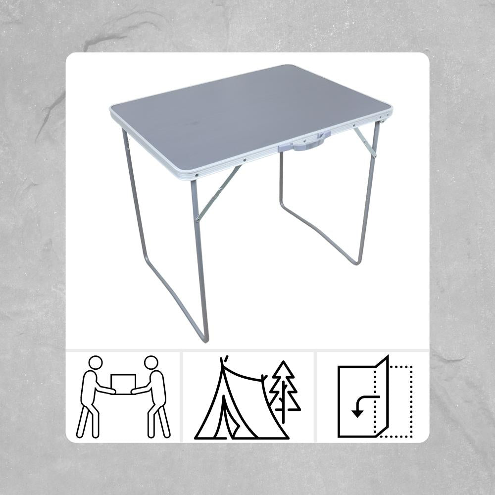 Deze campingtafel van Orange85 is ideaal om mee te nemen naar de camping. De campingtafel is grijs van kleur en gemaakt van metaal. De campingtafel is inklapbaar en daarom makkelijk mee te nemen op reis.