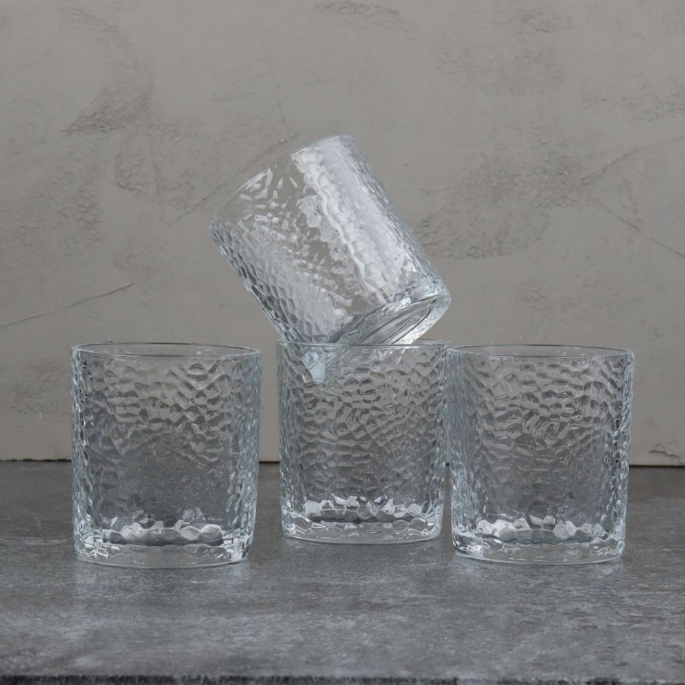 Set van geribbelde drinkglazen van het merk Orange85. De set bestaat uit 4 glazen met geribbeld reliëf. De glazen hebben een inhoud van 230 ml. Ze zijn gemaakt van stevig duurzaam glas en kunnen in de vaatwasser.