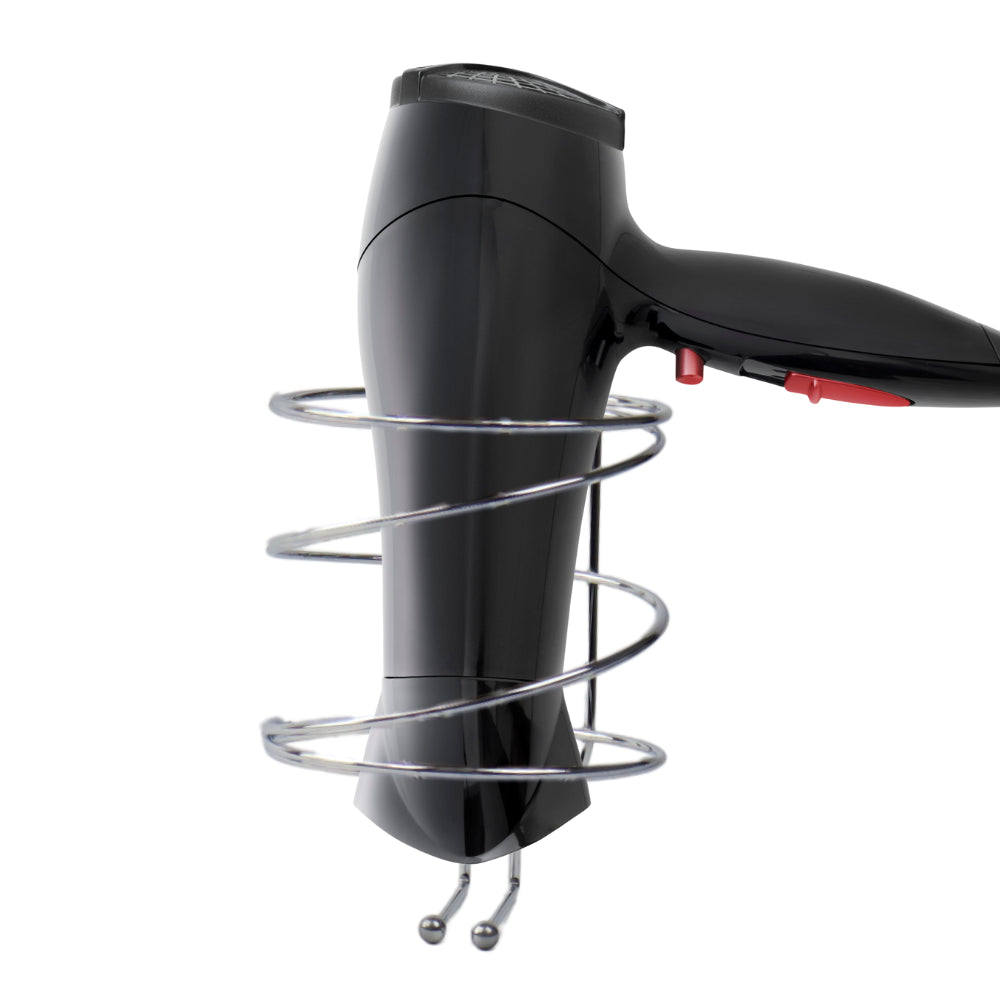 Deze Orange85 föhnhouder is geschikt voor elk type föhn. De houder heeft een diameter van 11 cm. De houder is om te hangen met twee schroeven. Deze schroeven (en pluggen) worden meegeleverd. Het materiaal is ijzer.