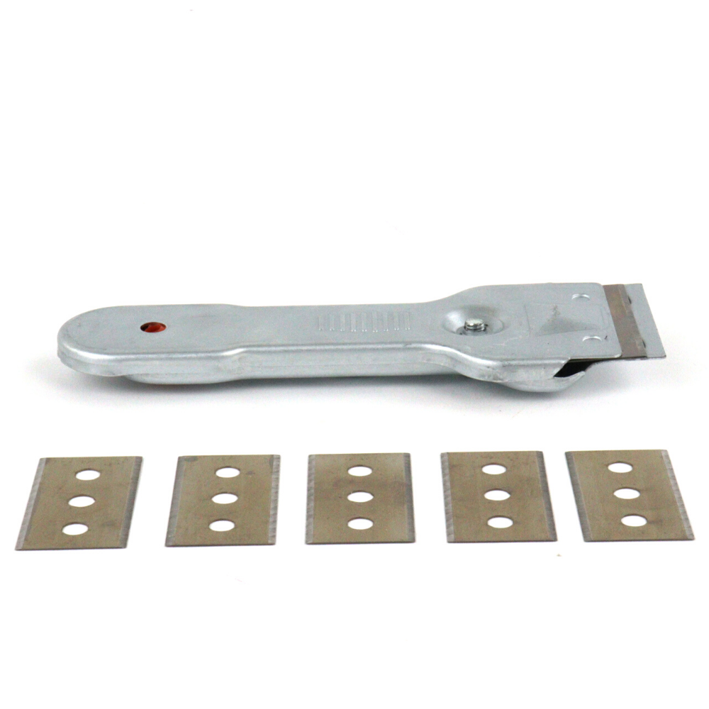 Orange85 glasschraper voor inductiekookplaten. De schraper bestaat uit 5 mesjes. Met deze mesjes kun je je inductieplaat reinigen. De schraper is vaatwasser bestendig.