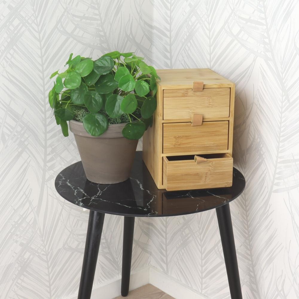 Deze opbergdoos van Orange85 is handig voor het bewaren van bijvoorbeeld make-up of kantoorartikelen. Het kastje heeft een afmeting van 20 bij 15 bij 21 cm waardoor je het overal kan plaatsen. De opbergdoos bestaat uit drie lades. Een lade heeft een afmeting van circa 20 bij 15 bij 6 cm. De lades zijn eenvoudig te openen door de grepen die bevestigd zijn aan de lade.