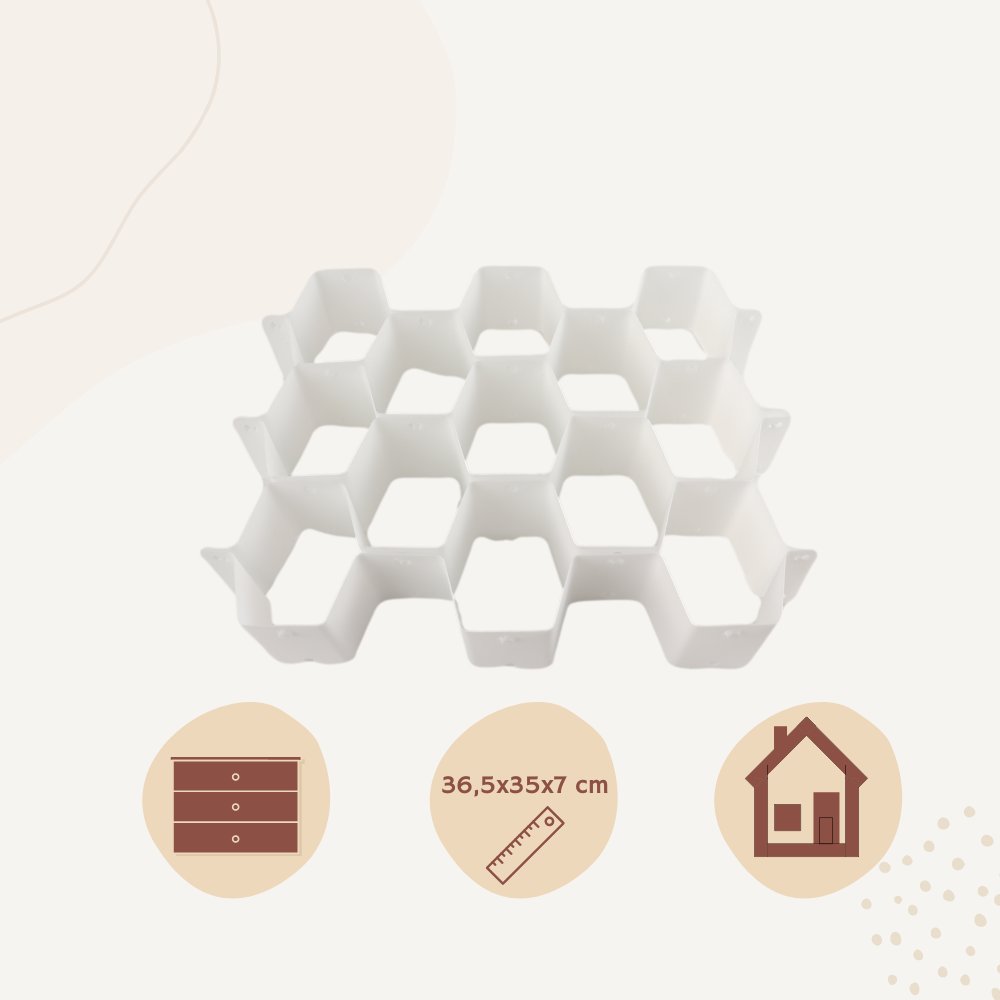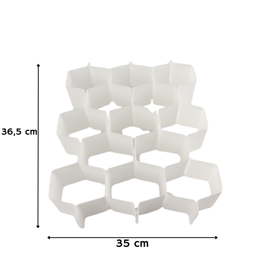 De lade-organizer van Orange85 is een product dat gebruikt wordt voor het ordenen van items in een lade of kast. De 6-delige lade-organizer is een organizer voor bijvoorbeeld accessoires, kantoor artikelen of sokken en ondergoed. De organizer kan worden geknipt op maat zodat het in iedere ruimte passend is. De productafmeting is 36.5 x 35 x 7 cm