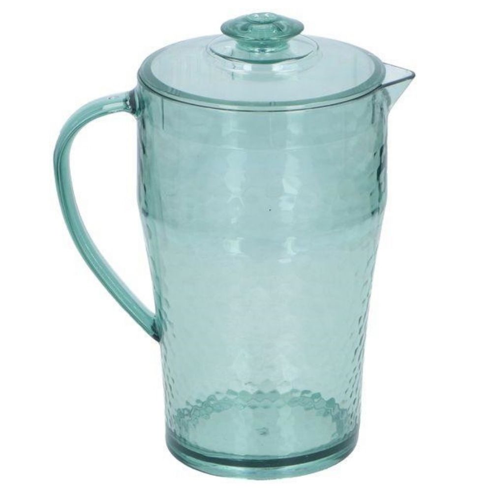 - Plastic schenkkan met gehamerde afwerking en blauwe kleur