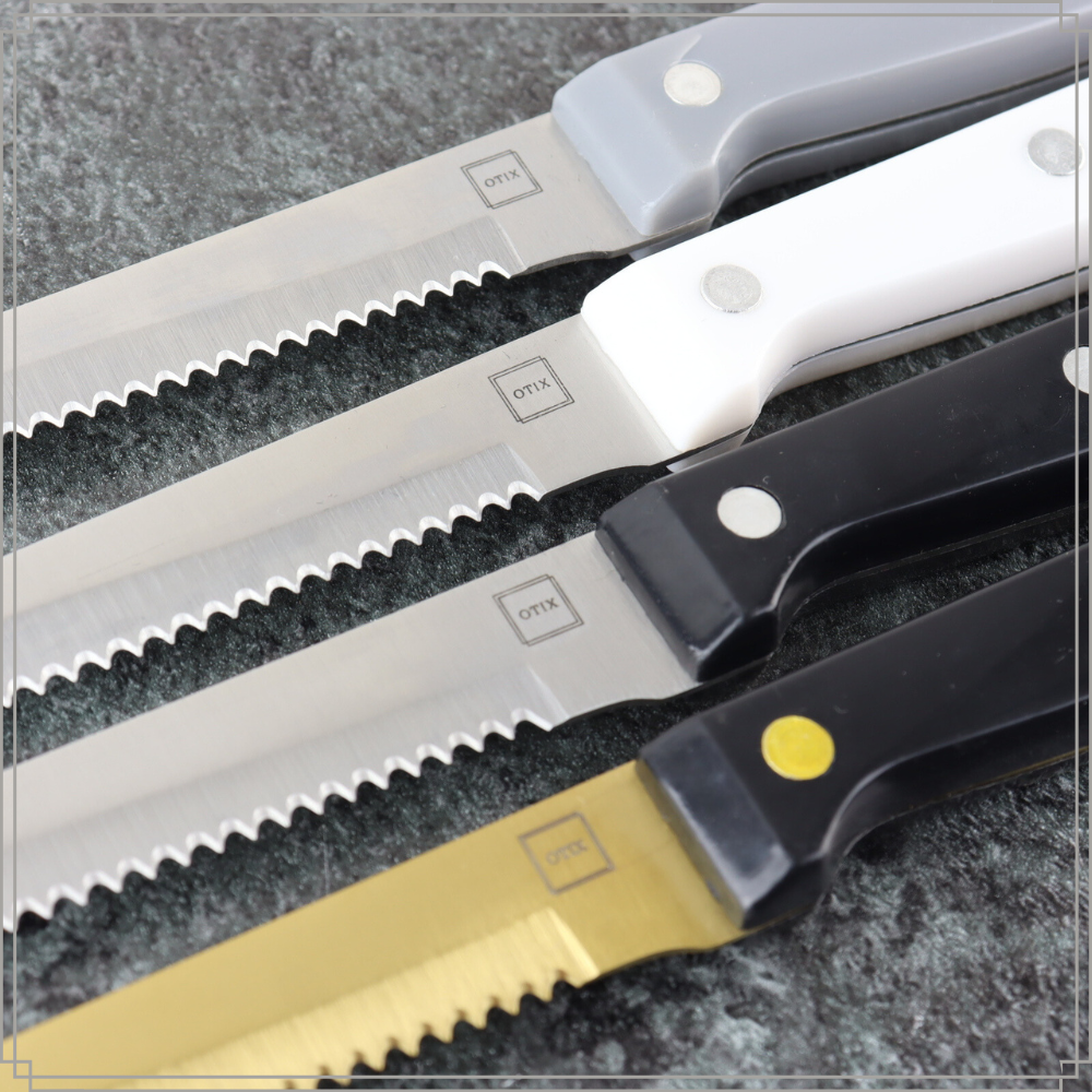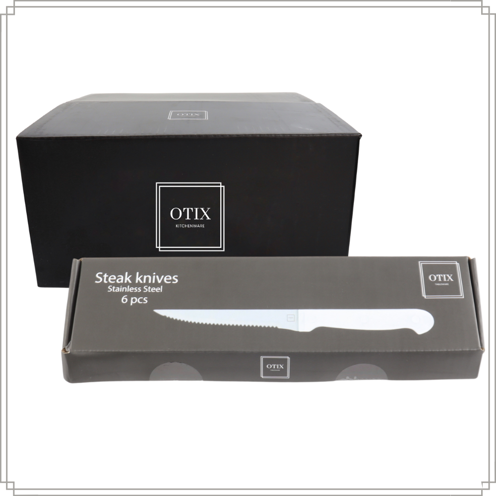Geniet van een perfecte steak met de OTIX Steakmessen set. Deze set van zes zwarte messen van roestvrij staal biedt stijl en functionaliteit voor elke etentafel.