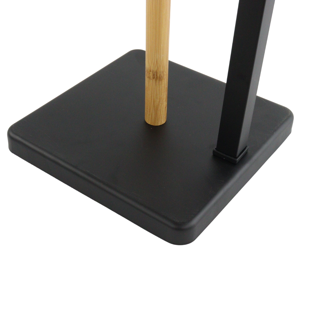 Toiletrolhouder staand van Orange85. De houder is gemaakt van metaal en hout. Er passen meerdere rollen op de toiletrolhouder. De kleur is zwart. De hoogte van de houder is 64.5 cm.