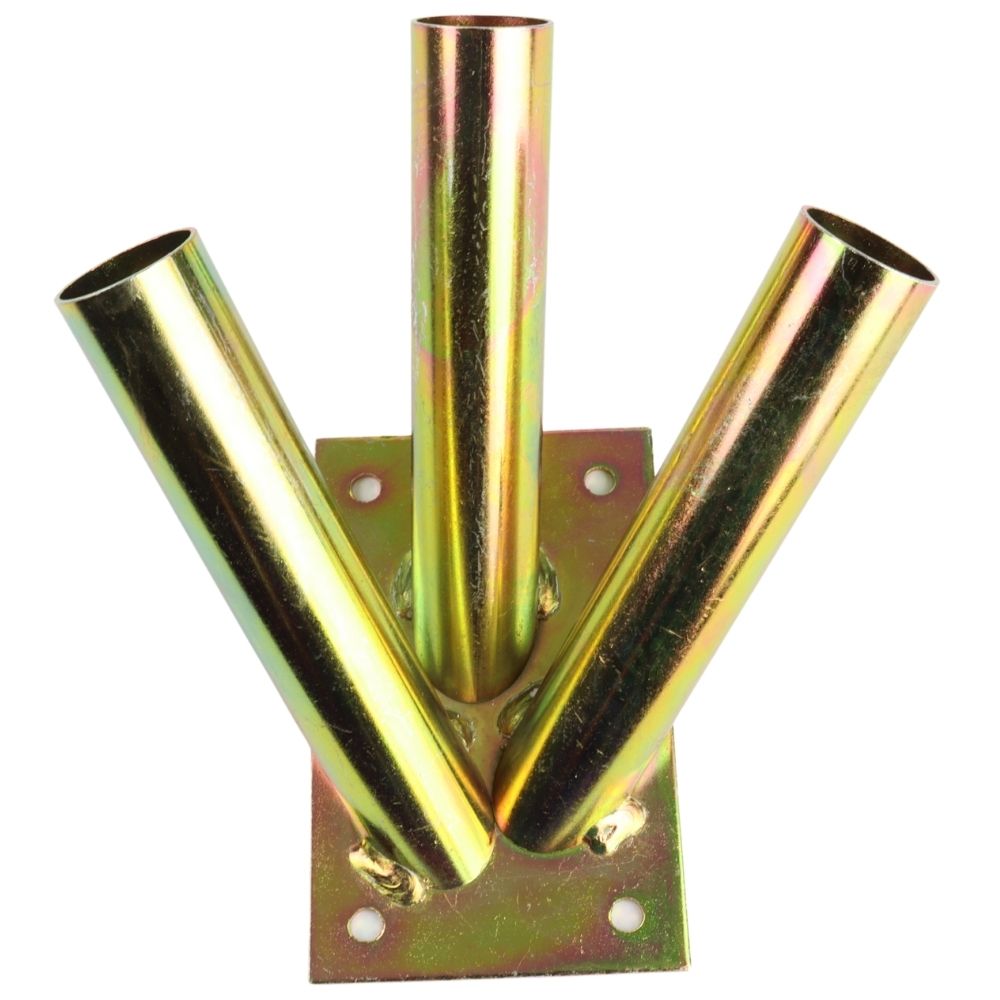 Deze drievoudige Orange85 Vlaggenstokhouder is ideaal voor bevestigen en ophangen van je vlaggen en vaandels. Doordat de houder is verzonken met plaatstaal is deze weersbestendig en roestvrij. Door de drievoudige houder kun je gemakkelijk meerdere vlaggen en vaandels tegelijkertijd ophangen. De vlaggenstokhouder heeft vier gaten zodat deze eenvoudig bevestigd kan worden aan elke muur of oppervlakte. Geschikt voor vlaggenstokken van maximaal 2cm.