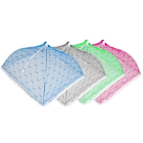 Gebruik de Orange85 Vliegenkappen voedselkap opvouwbaar 4 stuks om vliegen weg te houden van je voedsel. De voedselkap plaats je bijvoorbeeld over je vers gemaakte fruitsalade. Vliegen en andere insecten kunnen nu niet meer plaatsnemen op je eten. De kappen zijn perfect te gebruiken bij een zomerse barbecue. De kappen worden geleverd per 4 stuks in het roze, wit, groen en blauw. De vliegenkappen zijn 24 x 46 x 46 cm.