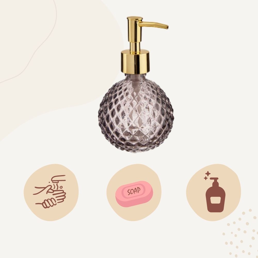 Het Zeeppompje van Orange85 met de kleuren antraciet en goud en is gemaakt van glas. Het is bedoeld voor in de badkamer, toilet of keuken. In het pompje gaat maximaal 300 ml vloeistof.