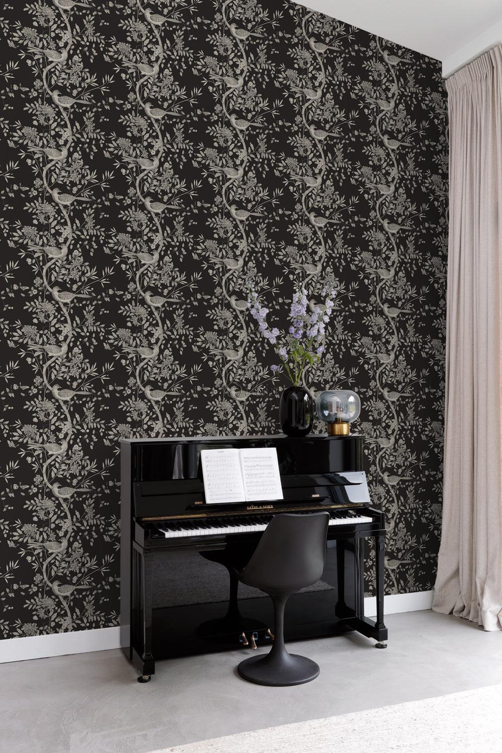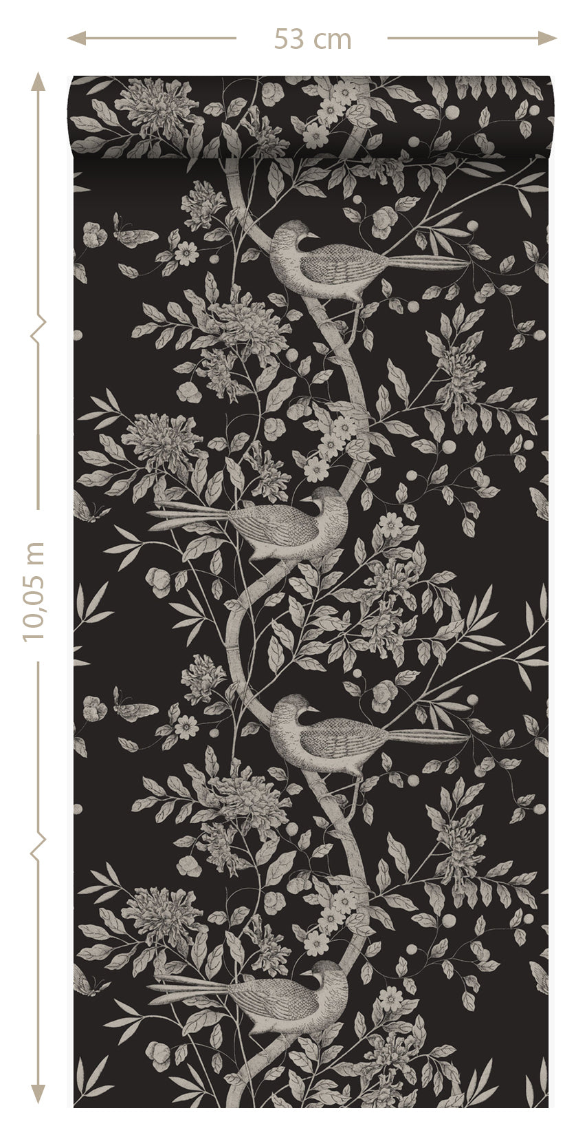 Origin Wallcoverings behang vogel gravure zwart - 347435 - 53 cm x 10,