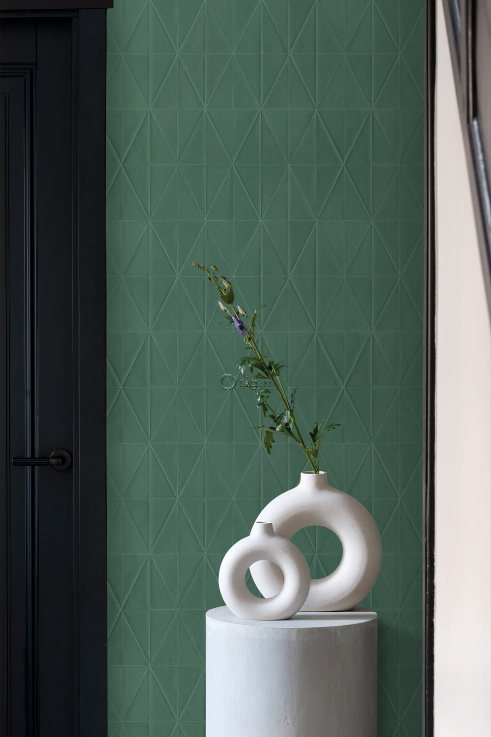Origin Wallcoverings eco-texture vliesbehang origami motief donkergroe