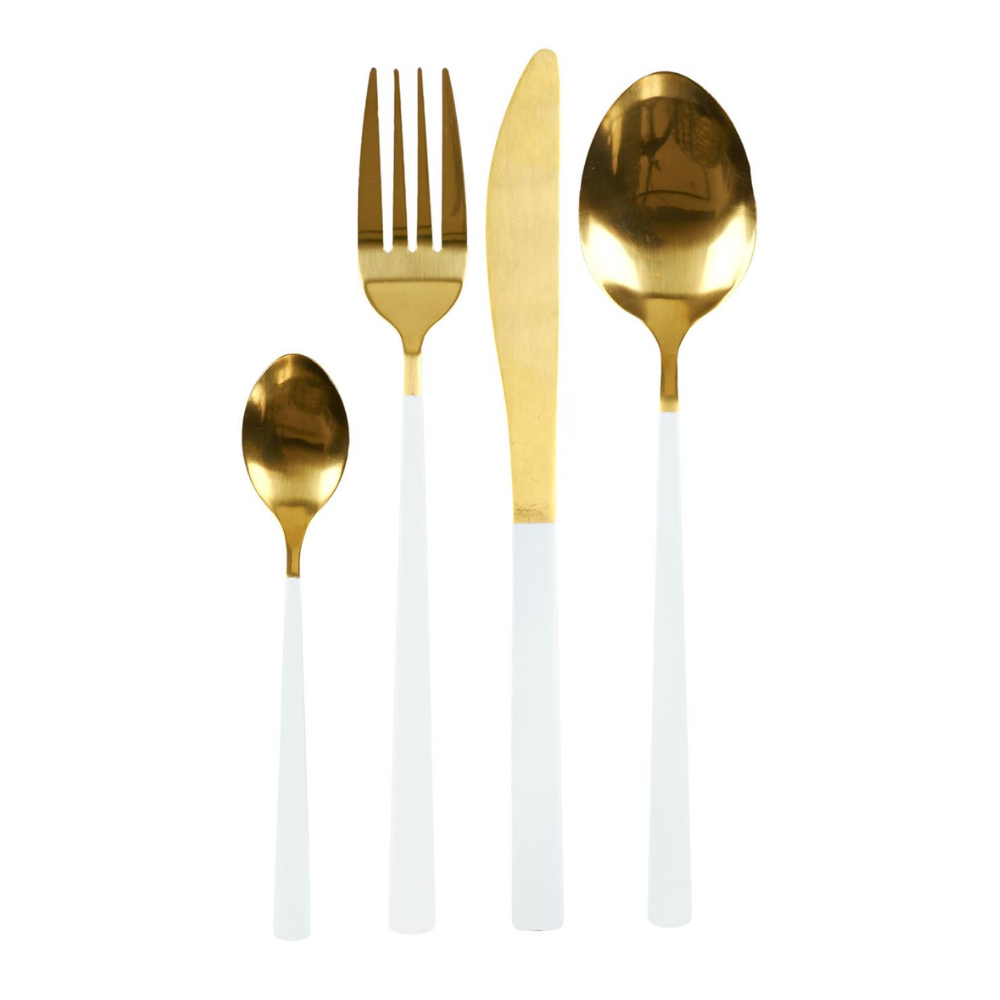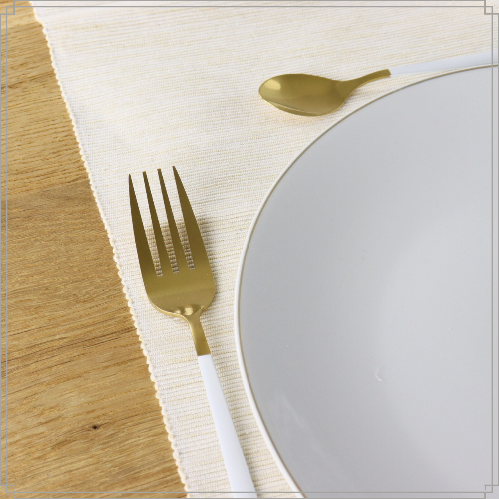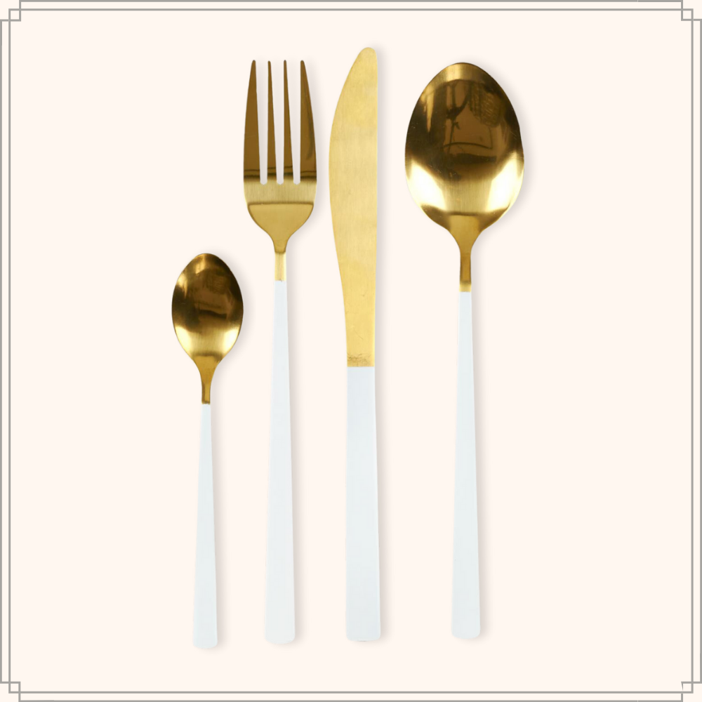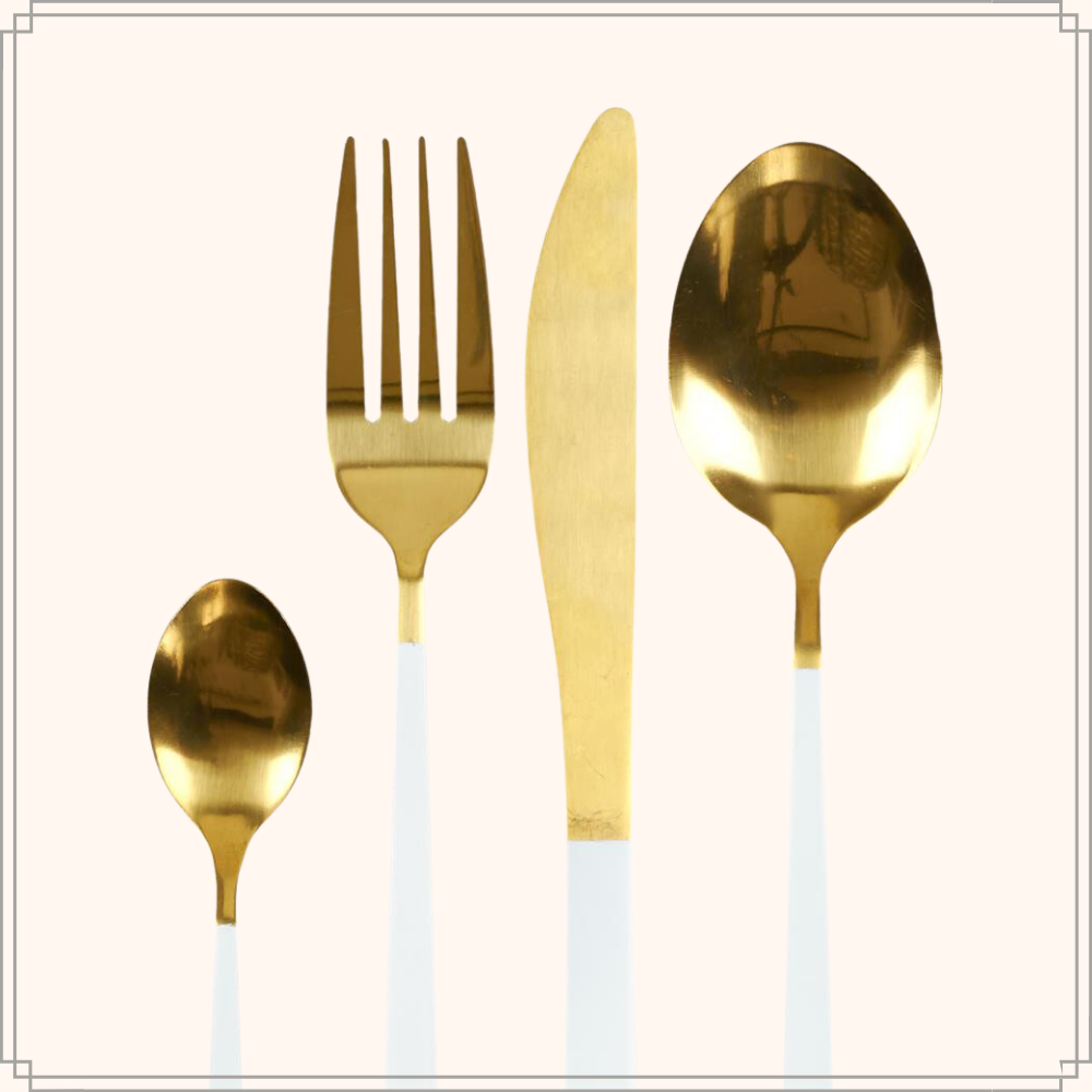 Voeg een vleugje luxe en verfijning toe aan je tafel met de OTIX Bestekset in een prachtige goudkleur met witte accenten. Deze 48-delige bestekset is geschikt voor 8 personen en is perfect voor dagelijks gebruik en speciale gelegenheden. Elke set bevat 8 vorken, 8 messen, 8 lepels en 8 dessertlepels, allemaal gemaakt van hoogwaardig roestvrij staal (RVS). Let op! De bestekset is niet vaatwasbestendig. Dit kan de witte coating aantasten