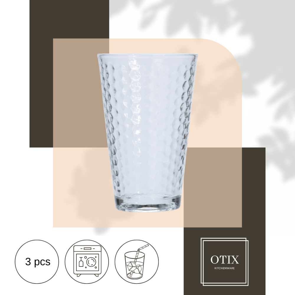 Deze drinkglazen set van OTIX is lichtgrijs transparant van kleur. De set bestaat uit 3 glazen. Het glas is gemaakt van glas met een geribbeld patroon. Elk glas heeft een inhoud van 300 ml. De glazen hebben een inhoud van 300 ml. De glazen zijn geschikt voor in de vaatwasser.