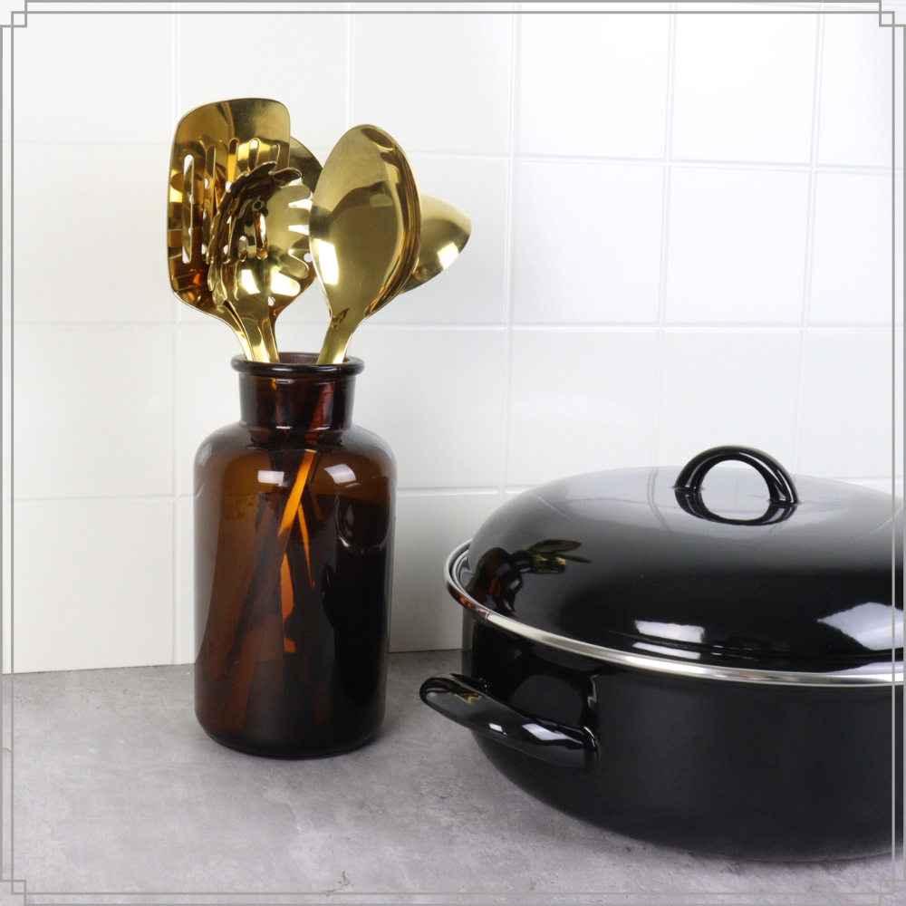 Maak koken stijlvol met de OTIX Keukengerei Set. Deze 5-delige set in goud omvat een schuimspaan, spaghettilepel, soeplepel, spatel en opscheplepel, perfect voor het bereiden en serveren van heerlijke maaltijden.