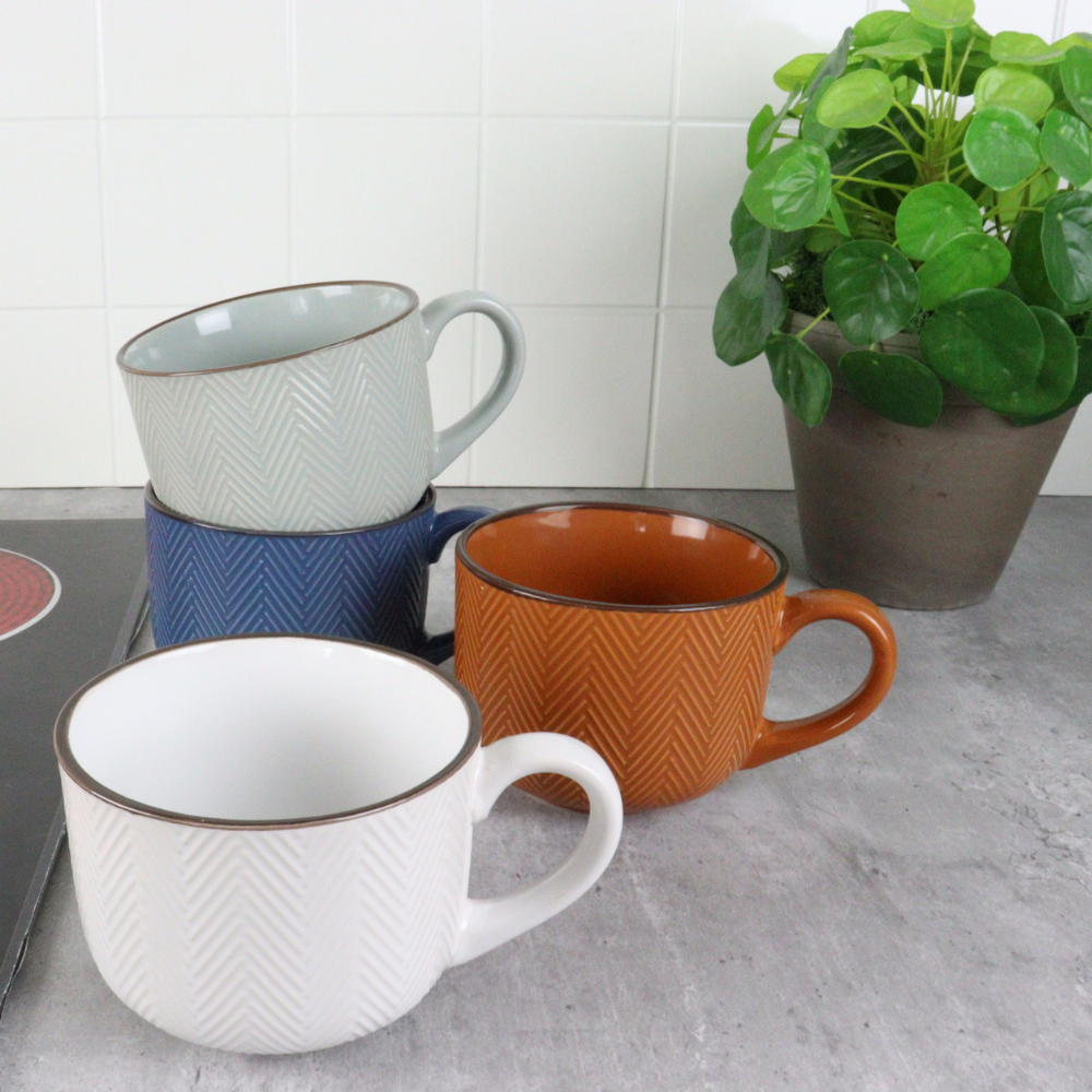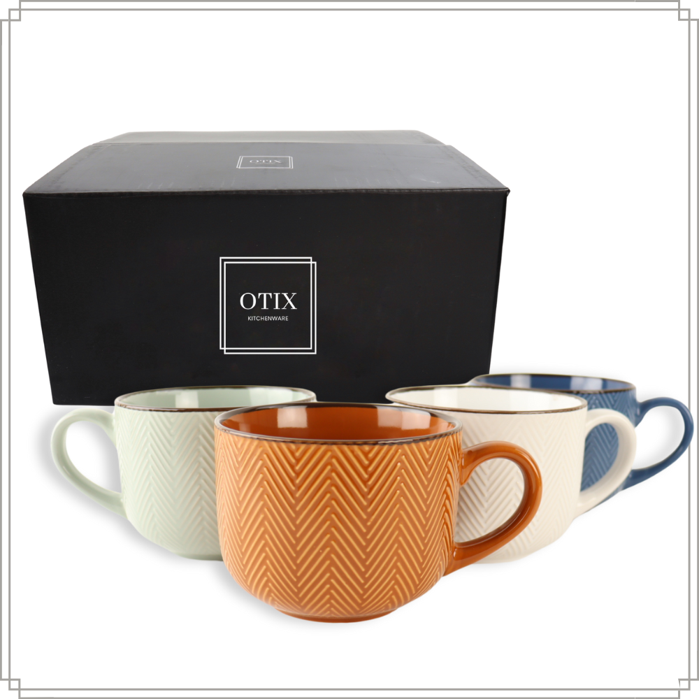 Koffiekopjes van het merk OTIX. De set bestaat uit 4 koffiekopjes met verschillende kleuren. Het materiaal van de kopjes is aardewerk en de inhoud is 460 ml. De koffiekopjes zijn geschikt voor in de vaatwasser.
