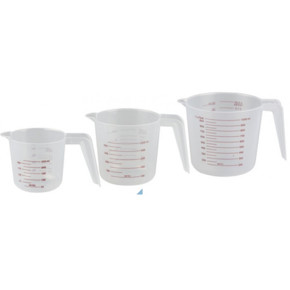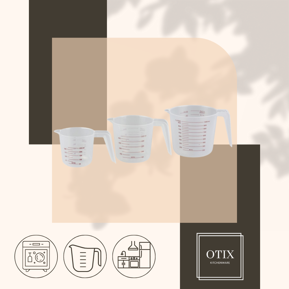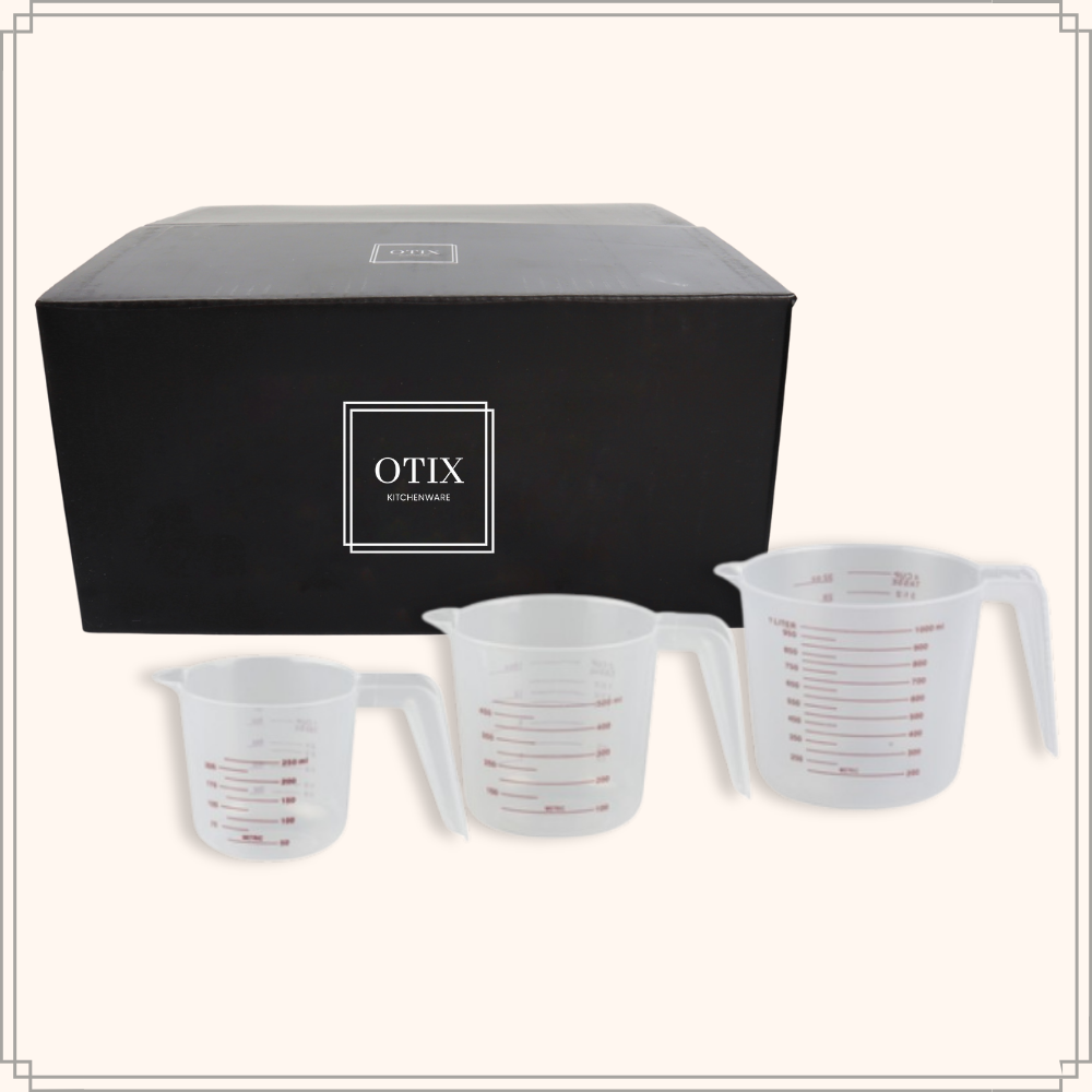 Deze OTIX maatbeker plastic is een set van 3 verschillende maten. Zo krijg je een maatbeker van 250ml, van 500ml en een maatbeker van 1 liter. Daarnaast kan je de drie verschillende soorten maatbekers goed gebruiken voor tijdens het koken. Kortom, ben je op zoek naar drie maatbekers in drie verschillende maten, dan is dit echt iets voor jou! Het advies is om deze maatbekers met de hand af te wassen om de kwaliteit te behouden.