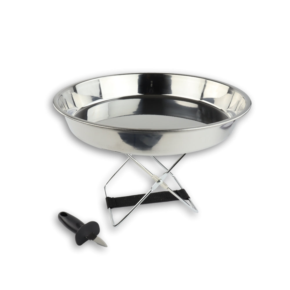 Met deze OTIX oesterset heb je alles in huis voor het serveren en eten van oesters. De set bestaat uit een inklaptafel met schaal en een oestermes. De schaal heeft een diameter van 34 cm. In deze schaal kun je de oesters serveren op tafel. Met het mes breek je vervolgens eenvoudig en snel de oesters open. Steek het mes in de oester en beweeg hem vervolgens een kwartslag heen en weer. Als er een opening is kunt u de oester verder open snijden. Het mes is geschikt voor zowel rechts- als linkshandigen. Deze set is geschikt voor in de vaatwasser.