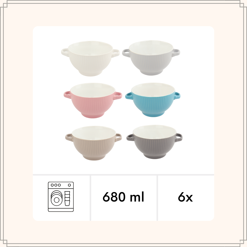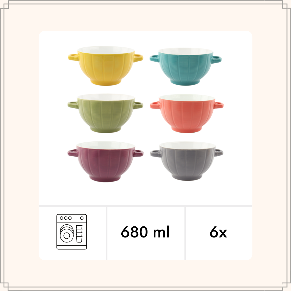 OTIX Soepkommen met oor Set van 6 Aardewerk Soepkommen 680 ml 6 Kle...
