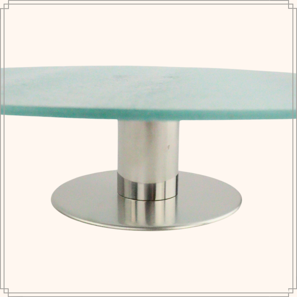 Deze taart plateau is enorm handig om een taart of cake op te presenteren. De bovenkant van de taartplateau is van glas en dit geeft een luxe en mooie uitstraling aan je taart. Om jouw taart te decoreren komt hij ook goed van pas. Je kunt namelijk het glas roteren zodat je bijvoorbeeld met een spuitzak snel je taart kan versieren. Een goede tool voor de echte taart liefhebber dus.