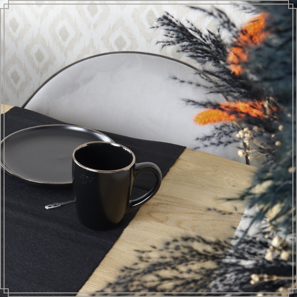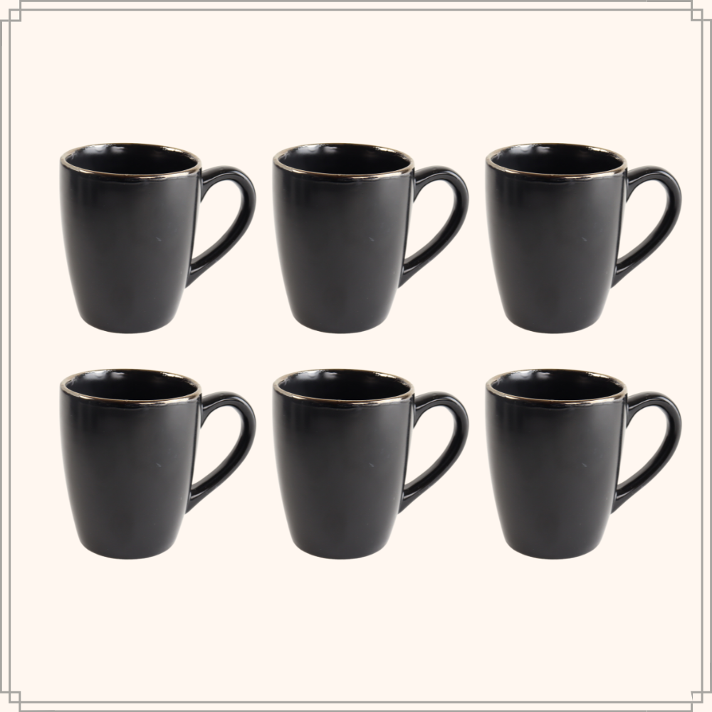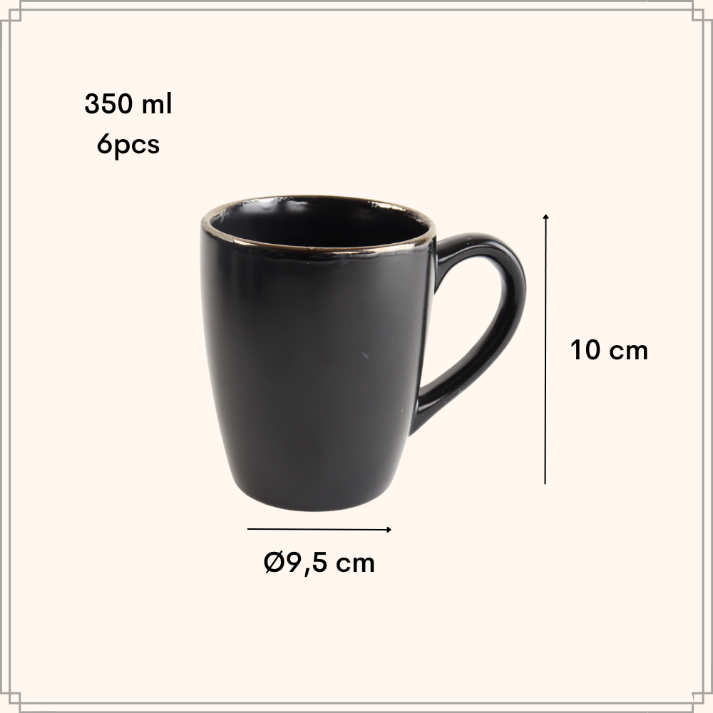 Deze OTIX Koffiekopjes Set van 6 Met oor Zwart met Gouden rand is ideaal voor koffieliefhebbers die houden van stijlvolle accessoires. De set bevat 6 koffiekopjes met een inhoud van 220 ml en een opvallende zwarte kleur met een gouden rand voor een chique uitstraling. De oortjes zorgen voor extra gemak en comfort bij het drinken van uw koffie.
