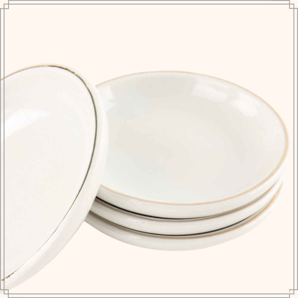 De OTIX theezakjeshouder is een set van 4 schoteltjes voor het opvangen van theezakjes. Het product heeft een wit met gouden randje kleur. De product afmeting is 8 x 8 x 1.2 cm.