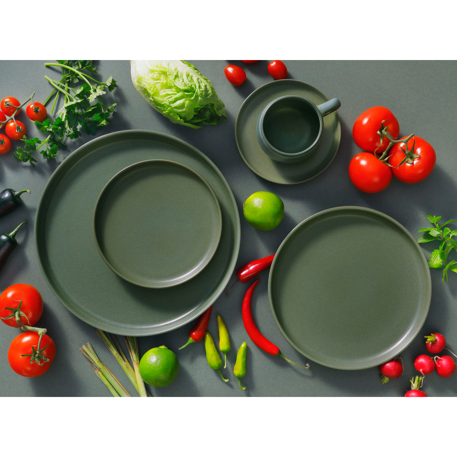 Belangrijkste kenmerken: · Product: 2 (ontbijt)borden · Diameter: 17 cm · Materiaal: Stoneware · Kleur: Groen · Vaatwasmachinebestendig: Ja · Hittebestendig: Ja, tot 220℃ · Vriezerbestendig: Nee Stoneware Stoneware is een type porselein gemaakt van klei met een fijne korrel gebakken op 1000 á 1100°C. Door dit materiaal op een hoge temperatuur te bakken is het sterker dan doorsnee aardewerk en daardoor zeer geschikt voor dagelijks gebruik. Daarnaast kan stoneware in de oven, de magnetron en de vaatwasser. Dit materiaal is kleur- en geurbestendig. De robuuste uitstraling maakt dat stoneware servies enorm populair is.