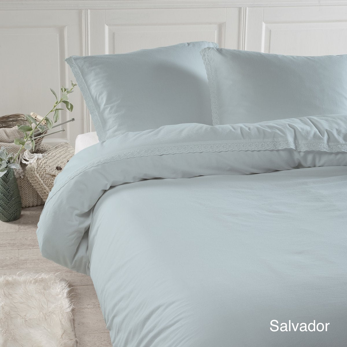 Eenvoudig en zacht Zacht en elegant Papillon-dekbedovertrek waaronder je heerlijk weg kunt dromen! Dit effen overtrek uit de Celebrity-collectie heeft een mooie zacht groene kleur en is vanwege het gemakkelijk te combineren uiterlijk een aanwinst voor je slaapkamer. Het overtrek kan gecombineerd worden met mooie gordijnen, sierkussens, een lamp of een vloermat.