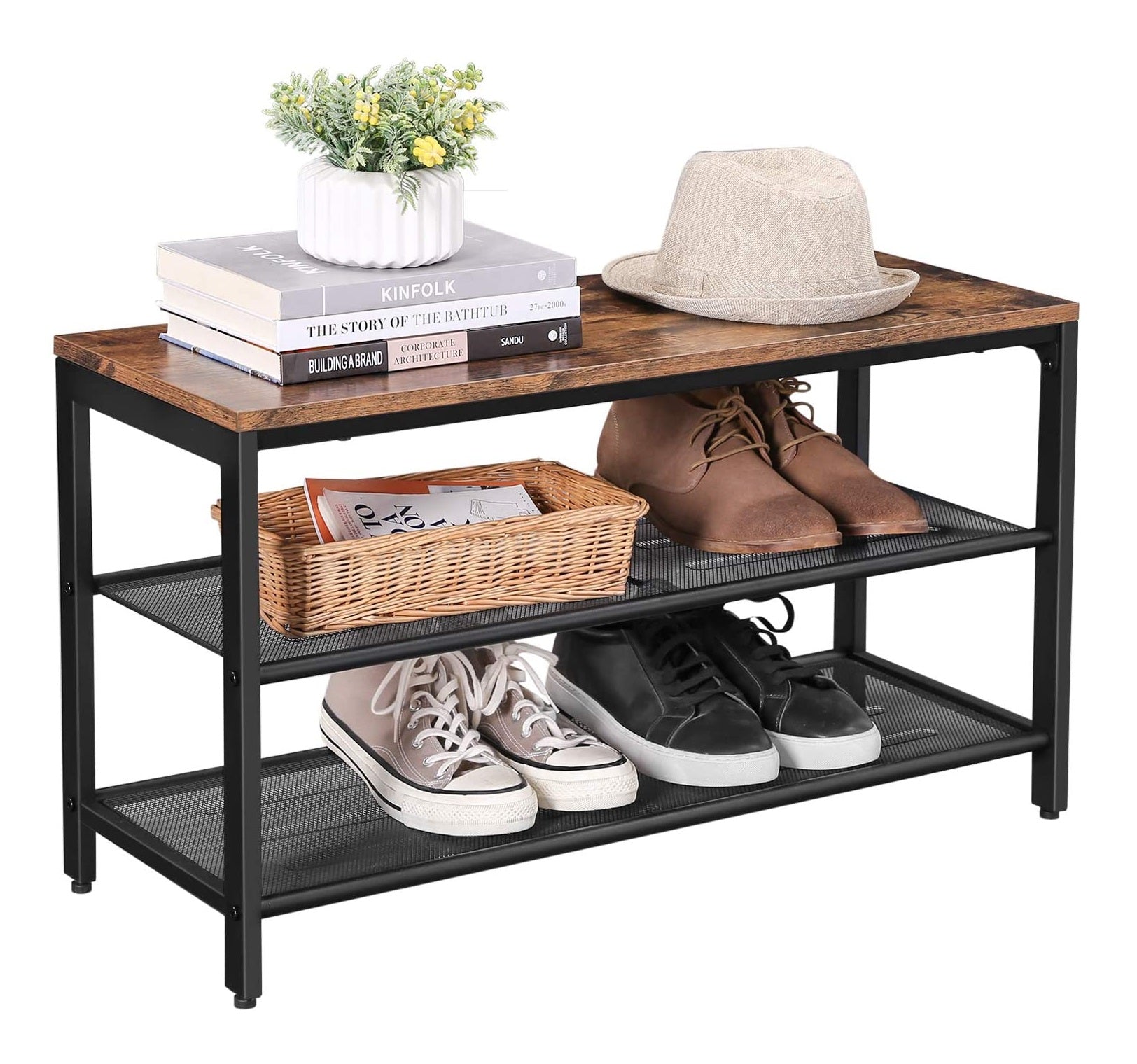 Parya Home - Schoenenrek - Met Zitje - Metaal - Bruin
