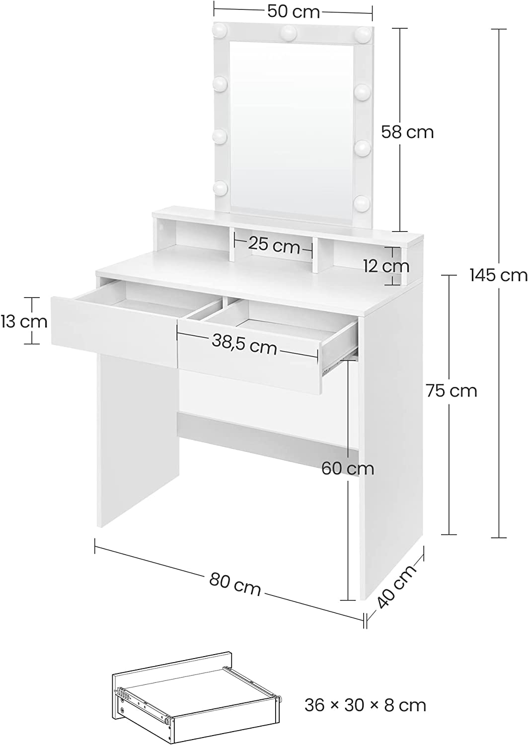 Parya Home - Witte Kaptafel - Rechthoekige spiegel - Gloeilampen - Wit