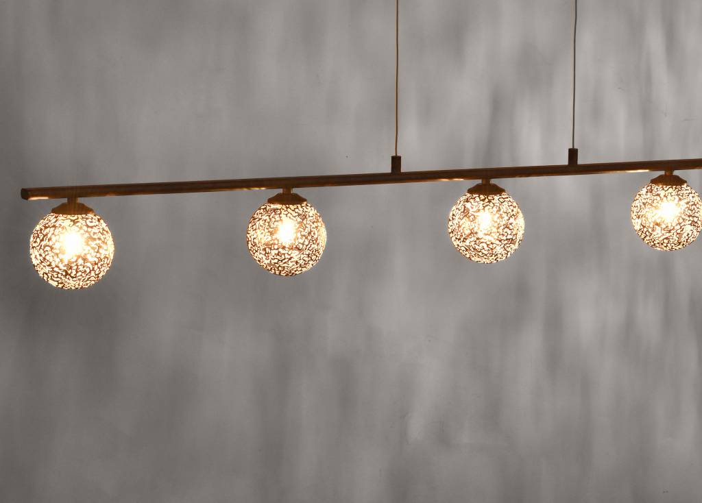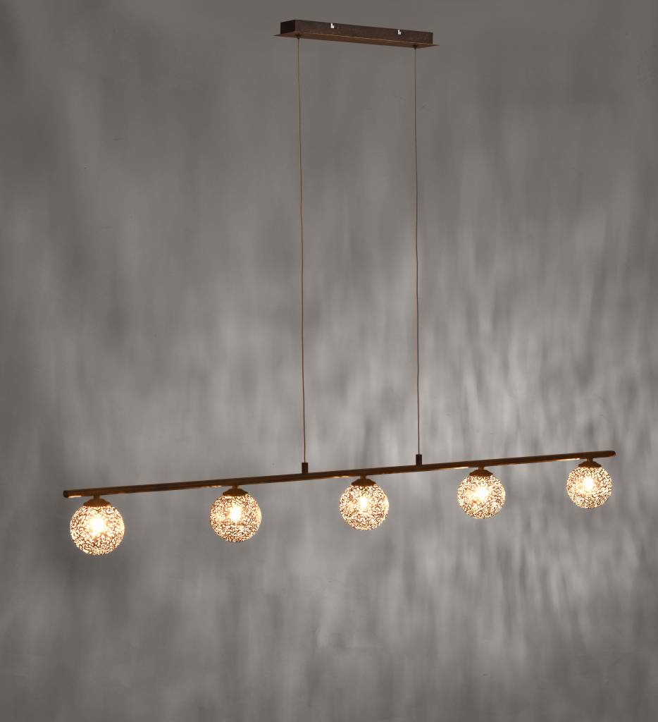 De metalen delen zijn donkerbruin, bewust geroest. Zie verder voor meer artikelen in deze serie. Dit armatuur heeft G9-fittingen maar worden de lichtbronnen er niet automatisch bijgeleverd. Dat is mooi, want zo kunt u kiezen voor de lichtbron die u wilt. Moet het led zijn? Dat kan! Moet het dimbaar zijn? Dat kan ook! Mits u niet de 40Watt per lichtbron overstijgt. Deze hanglamp is 132cm lang en kan tot 150cm vanaf het plafond komen.