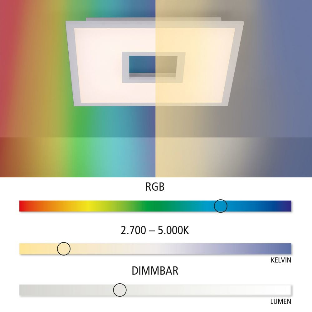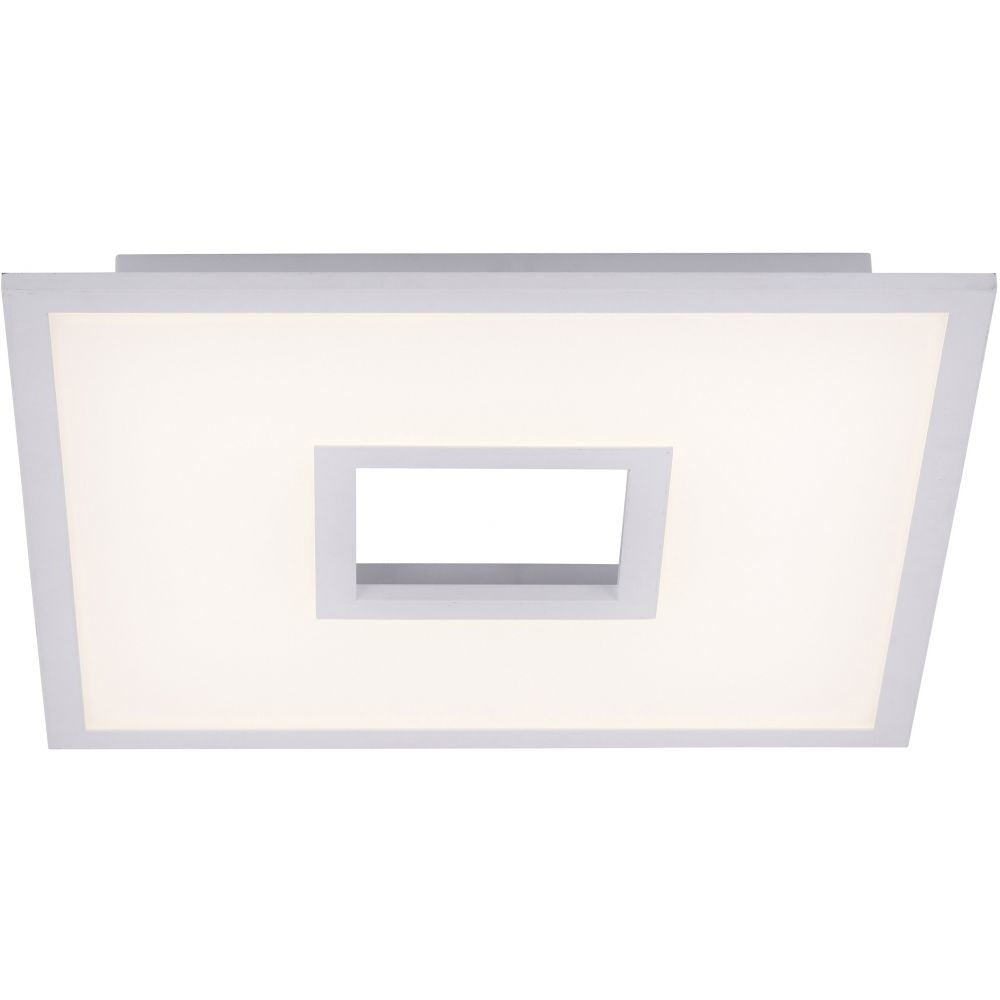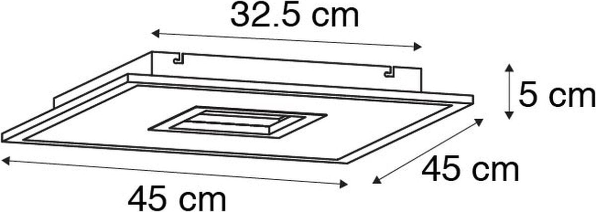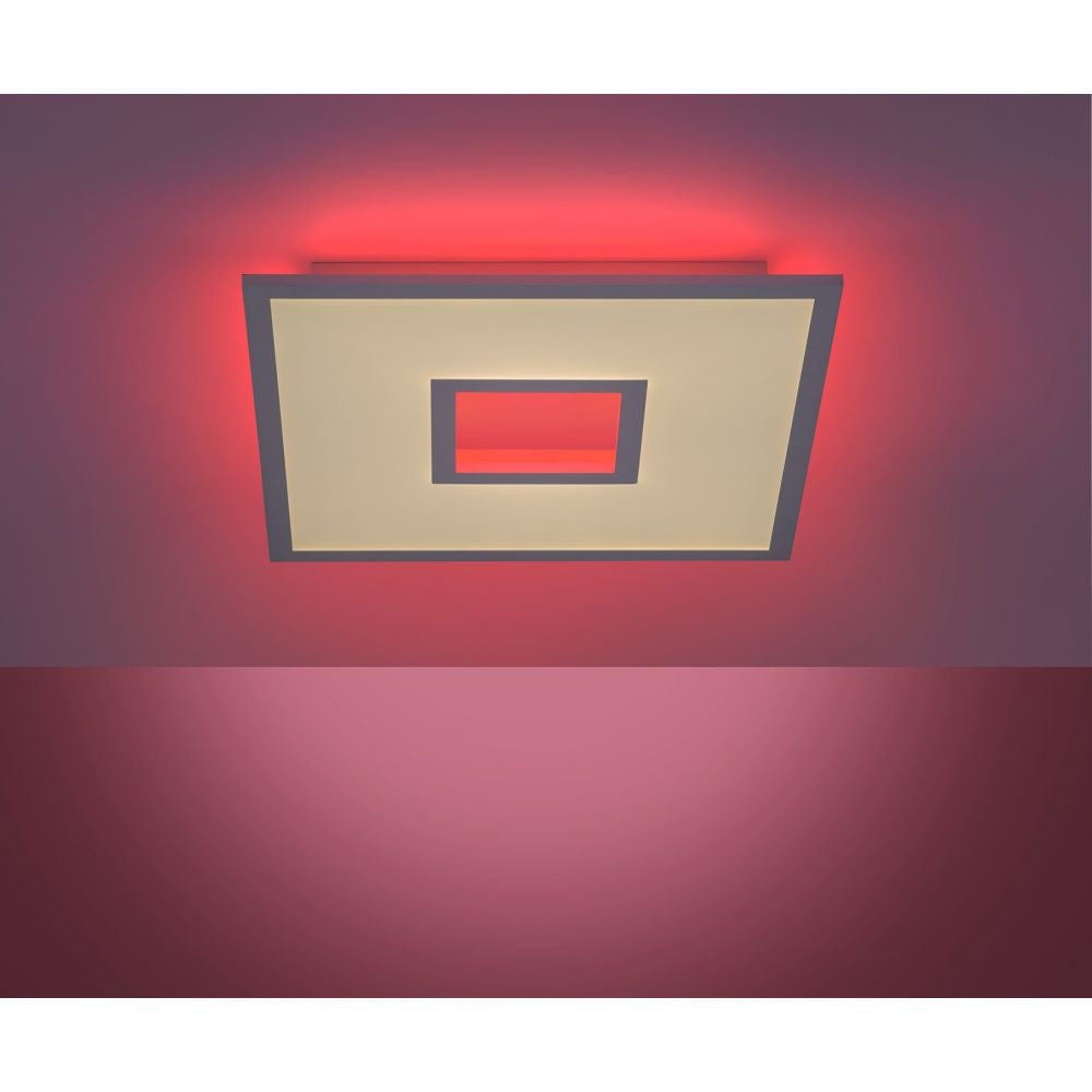 De Recess is een strakke design plafonnière met een verrassende twist. De plafonnière geeft niet alleen wit licht, maar ook rood, groen en blauw licht. Zo creëer je altijd de gewenste sfeer met de juiste lichtkleur. Recess is gemaakt van aluminium met kunststof en is wit van kleur. Hij heeft een lengte van 45 cm, breedte van 45 cm en hoogte van 5 cm. De plafonnière heeft twee lichtpunten, een om het licht naar beneden te verplaatsten (wit tot warm wit licht) en een voor (gekleurd RGB) indirect licht via het plafond. Deze zijn afzonderlijk van elkaar te bedienen met de meegeleverde afstandsbediening. Recess heeft een lichtvermogen van 3100 lumen en 2.700 - 5.000 Kelvin, daardoor is het een echte krachtpatser! Gelukkig is het licht en de kleurtemperatuur dimbaar, zodat je altijd prettig licht hebt in de ruimte. Deze super fijne plafonnière is geschikt voor in de woonkamer, slaapkamer of eetkamer. Recess zorgt voor de juiste sfeer!