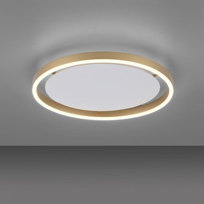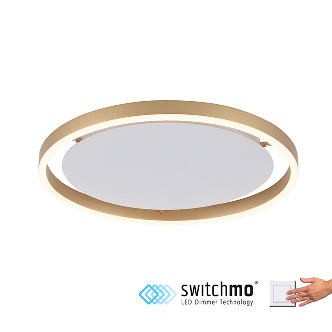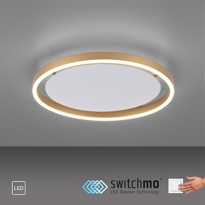 Deze prachtige mat messing kleurige LED-plafondlamp uit de Ritus-serie overtuigt niet alleen door haar moderne design, maar ook door het feit dat de plafonniere met de standaard wandschakelaar eenvoudig kan worden gedimd.