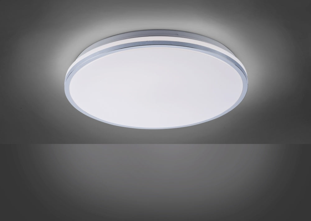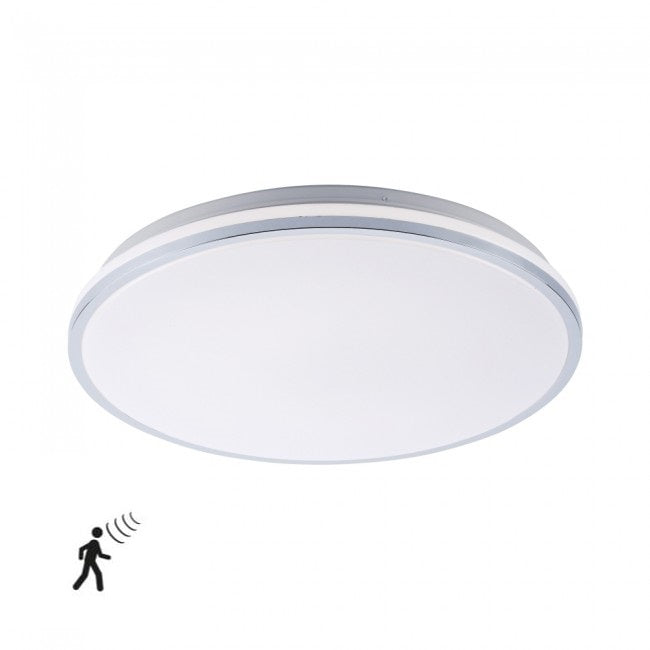 Deze leuke plafondlamp is voorzien van een wit opaal kap afgewerkt met een chrome rand en zal automatisch aan gaan zodra de sensor beweging ziet. De lamp heeft een doorsnede van 49 centimeter en is 8 centimeter hoog. De lamp heeft een ledboard van 24Watt dat zorgt voor goed licht in de ruimte.