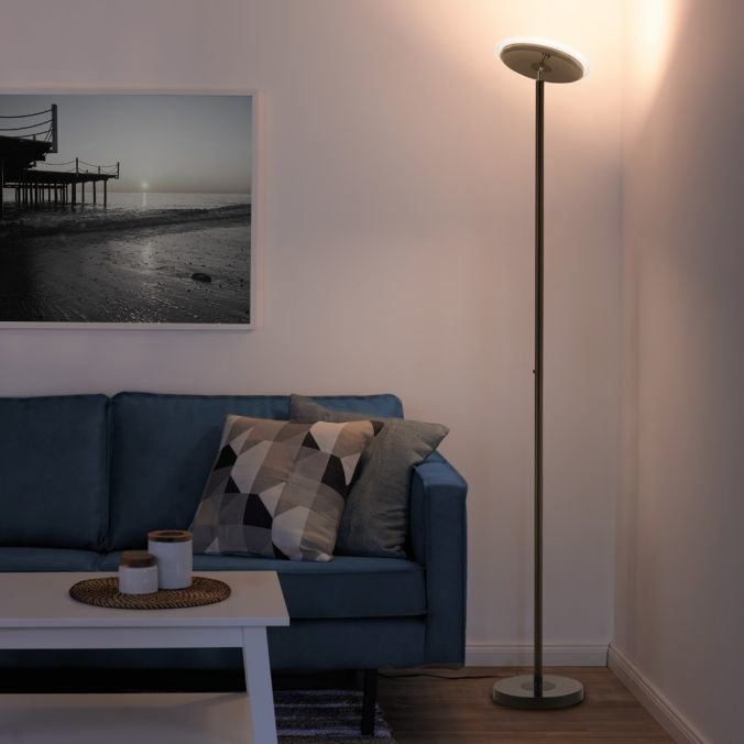 Qua helderheid dim je de vloerlamp met de geïntegreerde touchdimmer. De indrukwekkende uplighter heeft een kogelgewricht waardoor je de lichtinval individueel kunt aanpassen. Dankzij de gebruikte LED-technologie wordt de vloerlamp gekenmerkt als energiebesparend en overtuigt met een lage warmteontwikkeling en een lange levensduur.