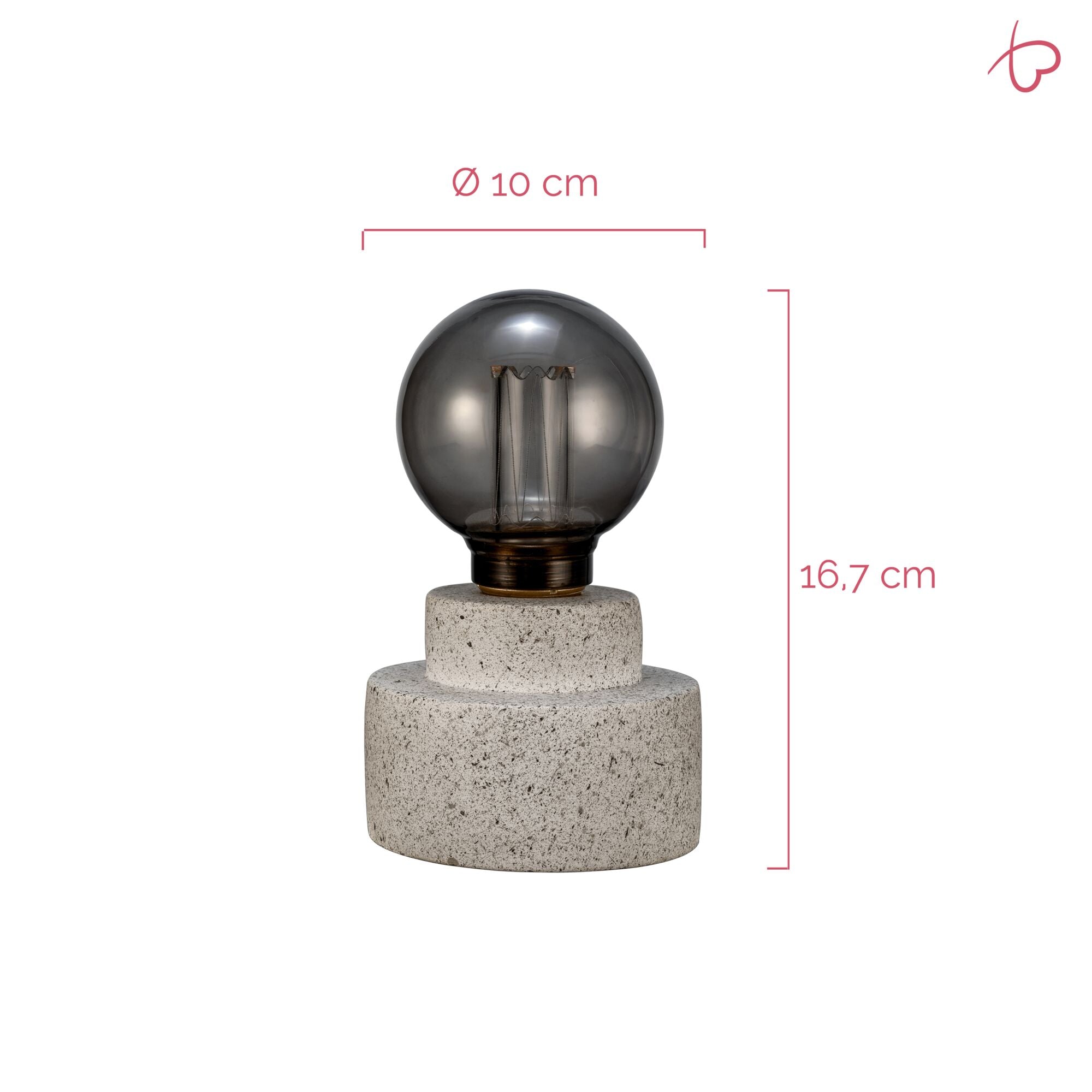 • Afmetingen (HxØ): 167x100 mm • Materiaal: beton, glas • Werkt op 2x AA batterijen (niet inbegrepen) • Inclusief LED-lamp| Afmetingen | |