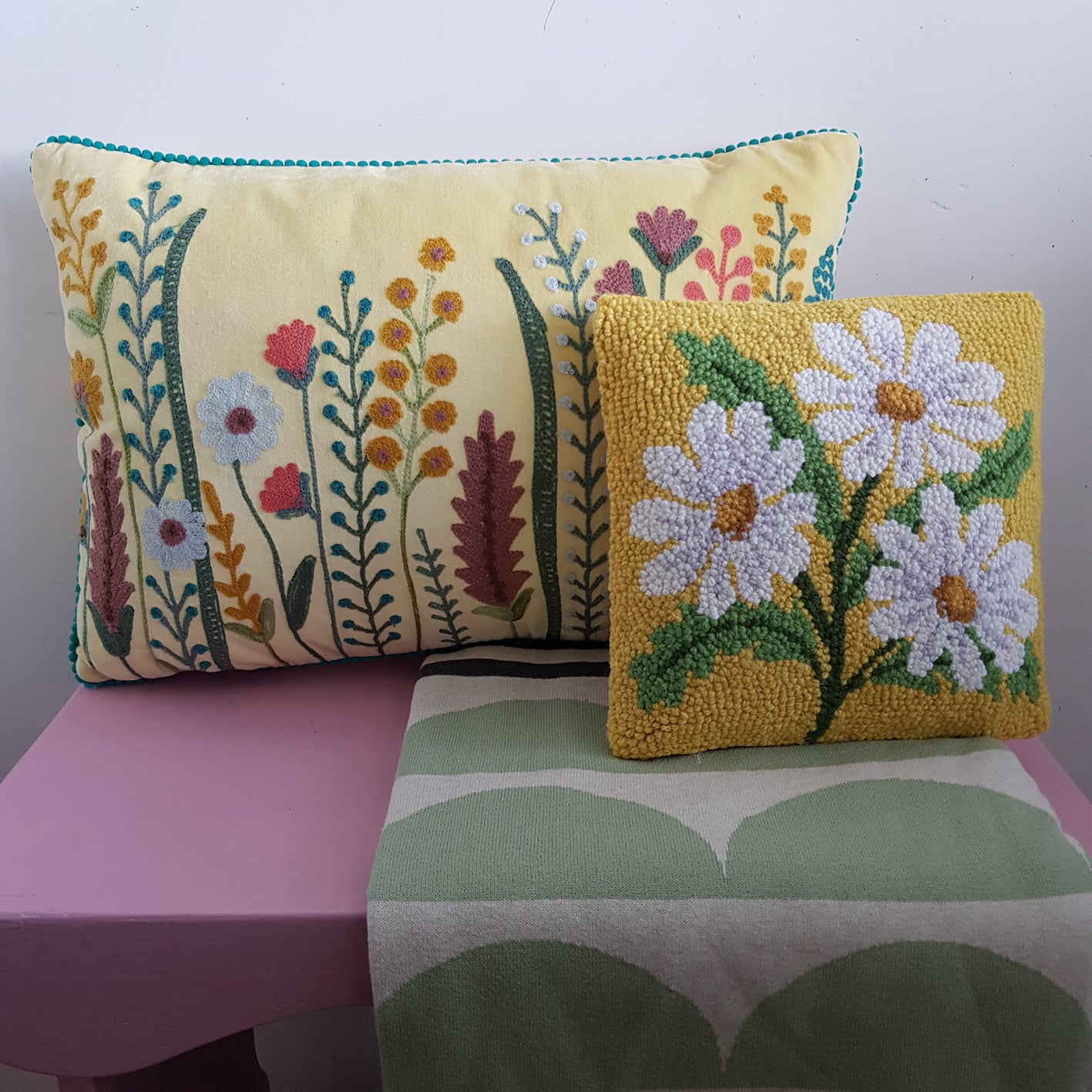 Peking Handicraft Handgeknoopt kussen kussen met margrieten 25x25