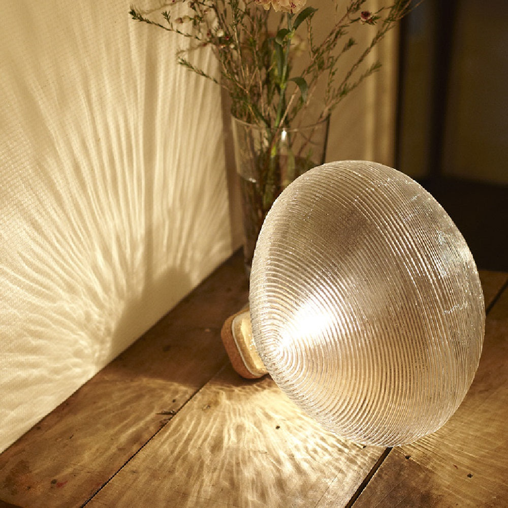 Mooi design De Tidelight leg je neer op zijn zij, door de kurken voet blijft hij goed op zijn plek liggen. Het snoer zit via deze kurken voet verbonden aan de lamp, dus rechtop zetten gaat niet. Maar dat is juist de bedoeling! Door hem neer leggen valt het licht namelijk in een grotere hoek dan wanneer hij staat. Door het geribbelde glas ontstaat er een bijzonder lichtstpel op de muur zodra je de lamp aanzet. Extra leuk: je kunt de Tidelight ook als vloerlamp gebruiken!