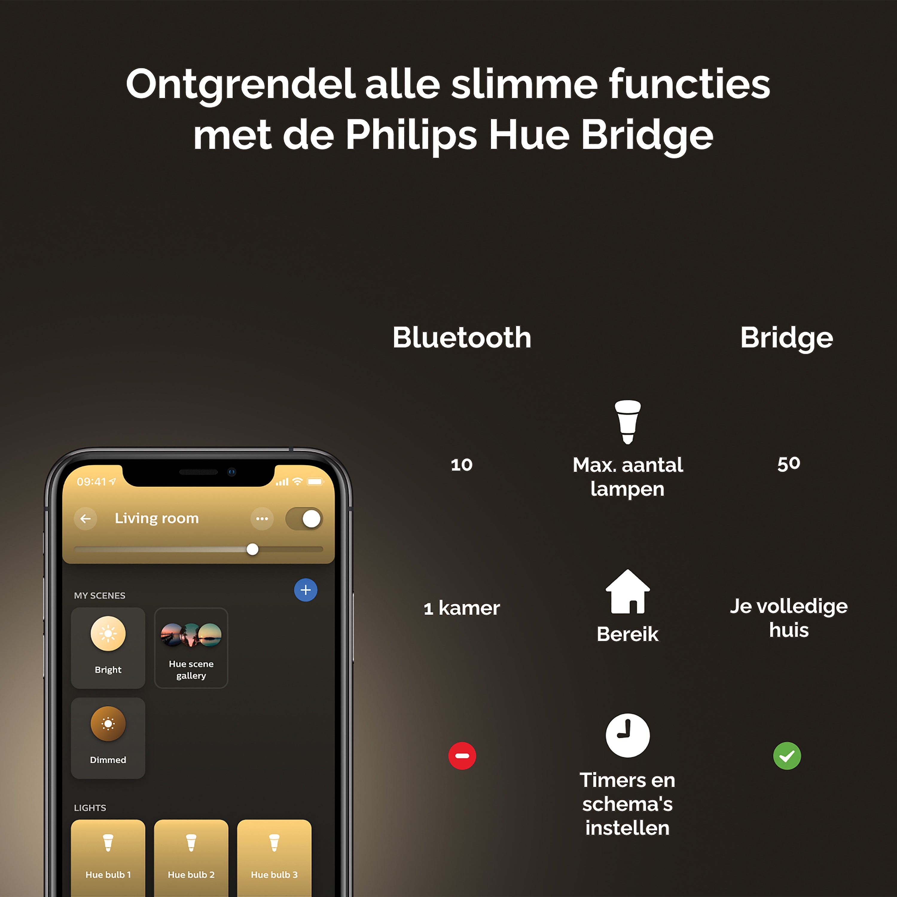 Philips is wereldwijd toonaangevend en marktleider op het gebied van energiezuinige verlichtingsoplossingen. Philips levert innovatieve producten welke geënt zijn op zijn merkbelofte: 'Innovation for you'. Philips Hue is onderdeel hiervan en biedt een groot assortiment aan slimme lampen, armaturen en accessoires voor binnen én buiten. De lampen worden gekoppeld aan Wi-Fi of Bluetooth en zijn te bedienen met een app of afstandsbediening. Nog nooit was je huis verlichten zo gemakkelijk.