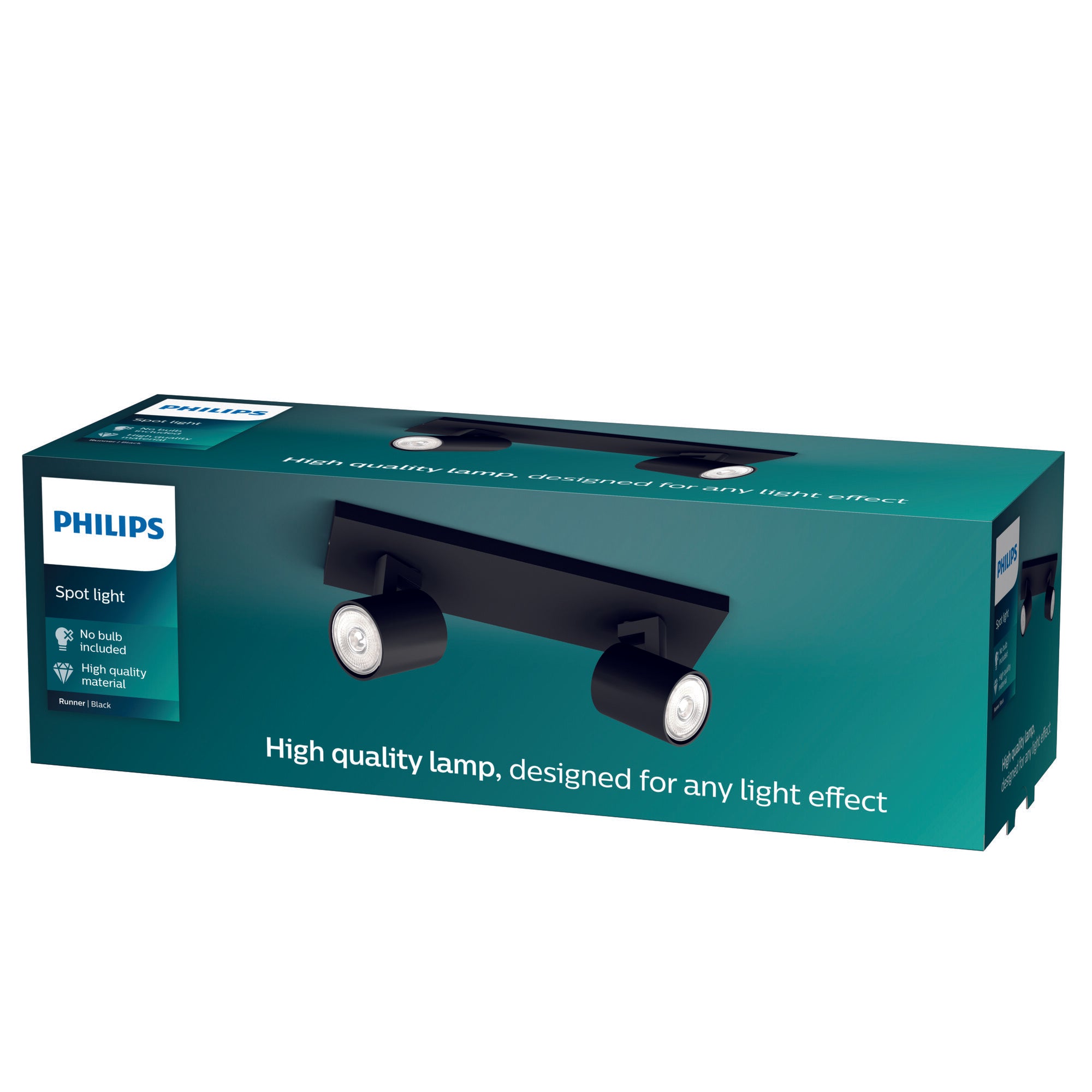 De Philips Runner 2-lichts opbouwspot heeft een industriële stijl, is klein van formaat en past perfect in elk modern interieur. Deze subtiele zwarte plafondlamp met draaibare spots is perfect voor elke ruimte in huis. Richt het licht precies waar jij het nodig hebt.